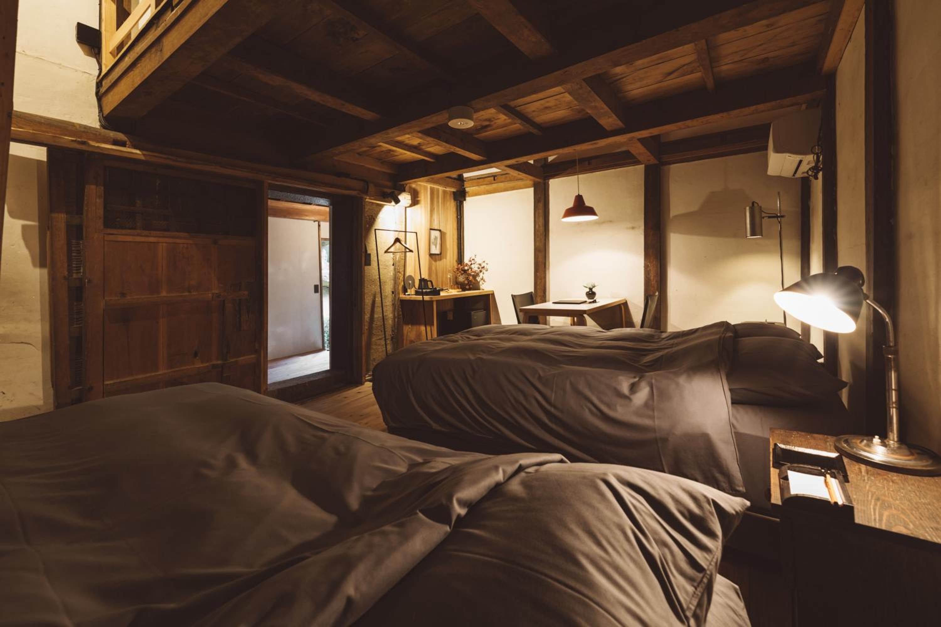 築150年の古民家をリノベーションした部屋は、どこか懐かしく且つ設備は新しい現代の物なので快適。