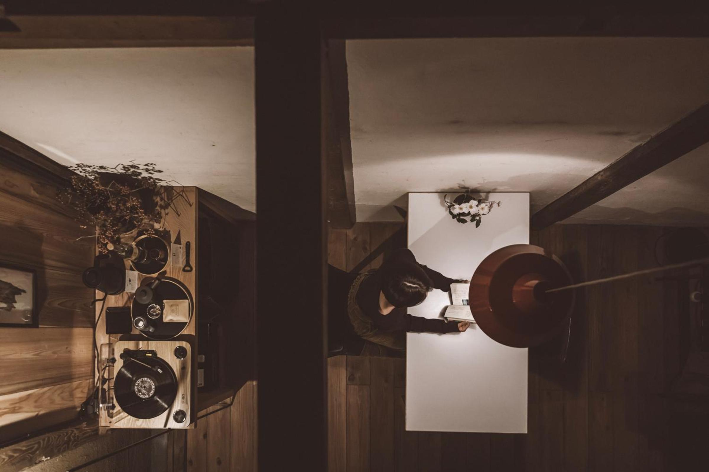 部屋にはレコード備え付けられていて、ボブディランを和モダンの部屋で流すと