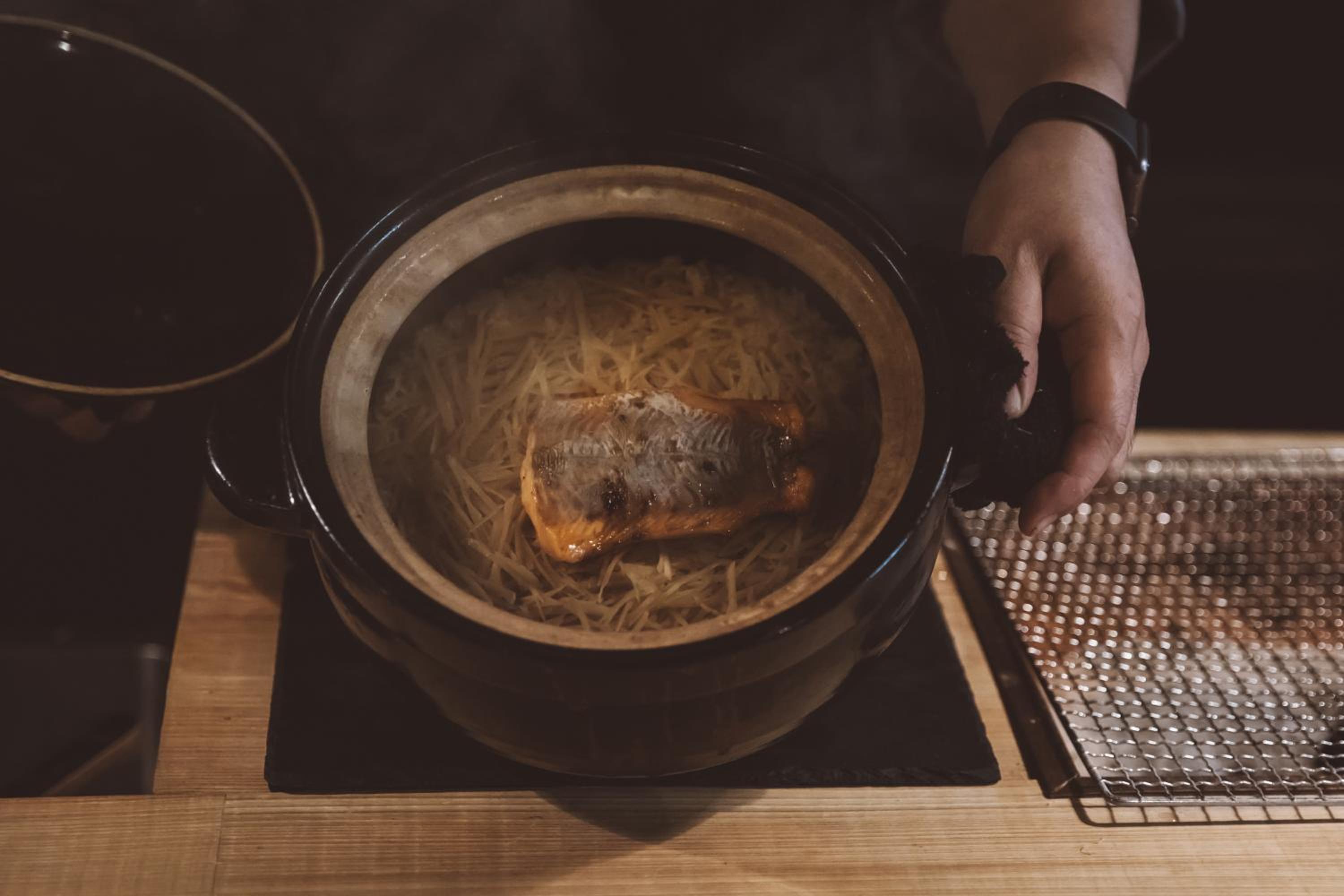 ...aber Vorsicht, nicht schon den Magen mit Getränken und Snacks füllen, denn danach kommt das wunderbarste Menü mit vielen Gängen vom Koch Owa Yukiyoshi, der sein ganzes Herzblut in die Zubereitung der Speisen steckt und viel Können beweist. Eine unvergessliche und hervorragende Küche, nur mit Zutaten und Lebensmitteln der Region zubereitet.