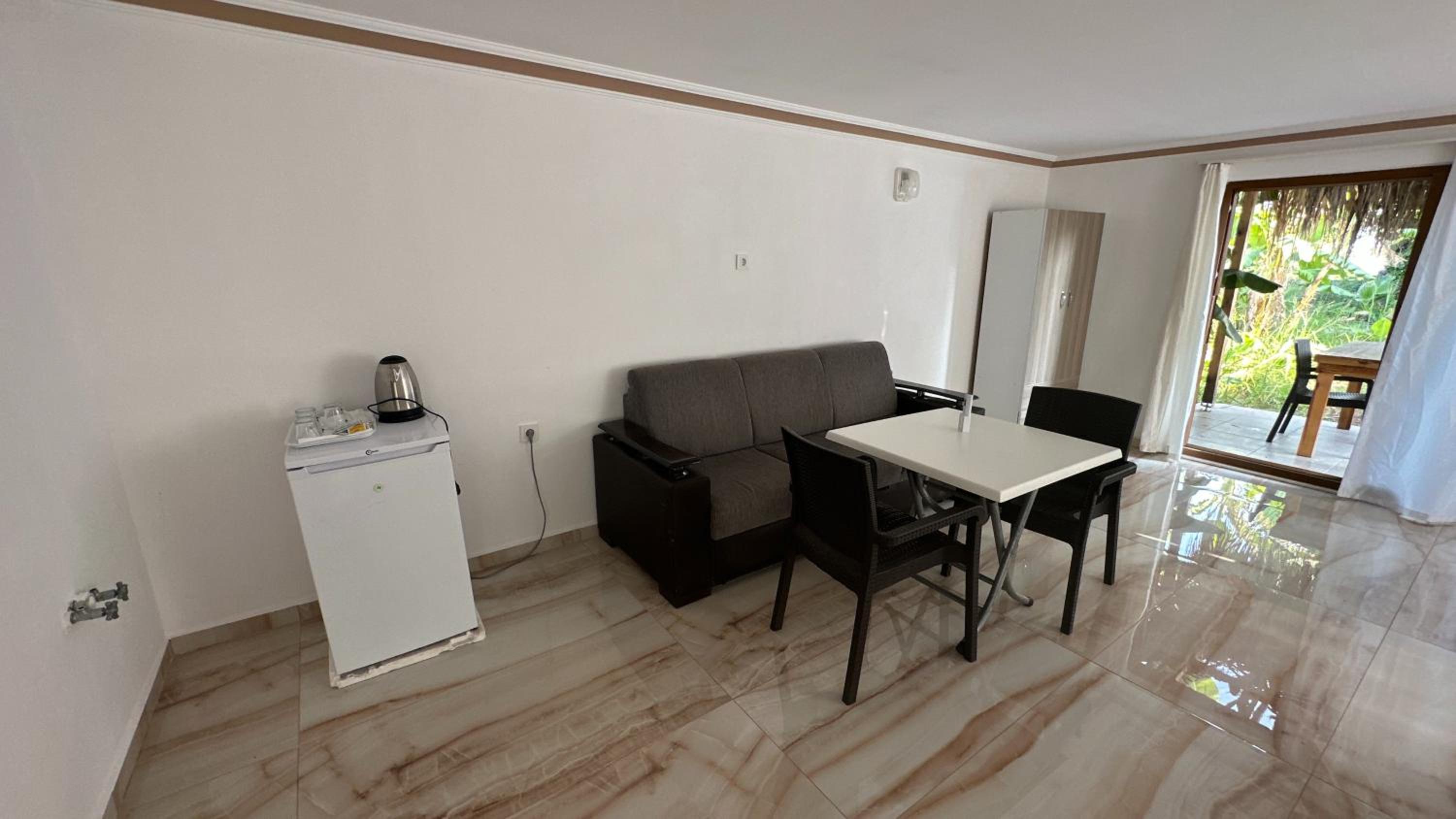 The staff is amazing! They were really kind and welcoming! Swimming pool is clean and you can swim at any time. Also you can order a breakfast for 5 eur. Beach is 10 min walk from the hotel. The place is really calm.