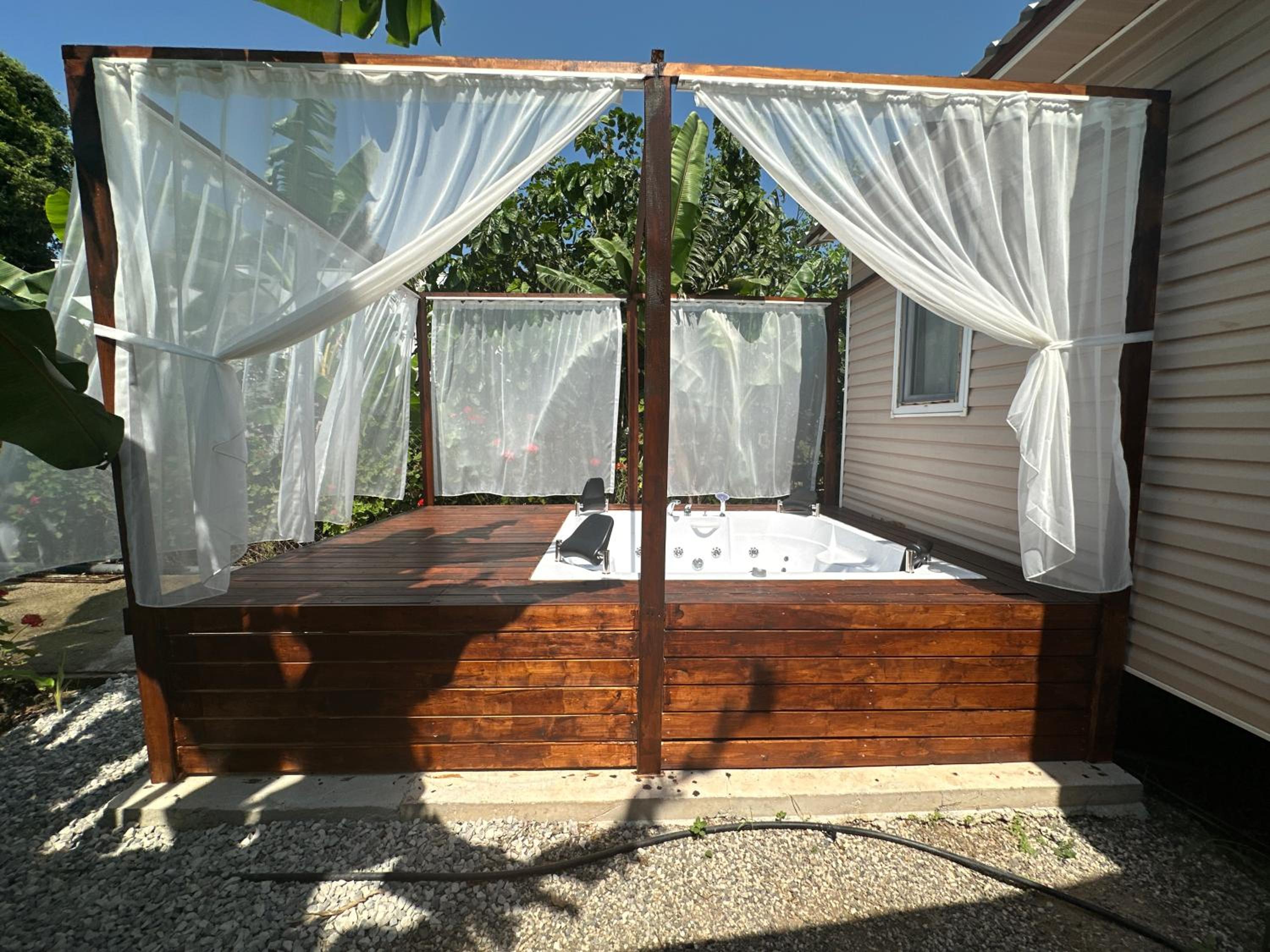 Es ist sehr ruhig es ist sehr grün und irgendwie eine kleine Oase. Wir waren im Bungalow ein gemietet mit Pool und kleiner Sitzecke. Hatte eher ein Camping Charakter. Sehr einfach alles alles aber ok für 2-4Tage. Man konnte sich Tee/ Wasser/ Kaffee und Früchte nehmen. Frühstück ist einfach gehalten. Der Besitzer ist eigentlich immer vor Ort und sehr nett.