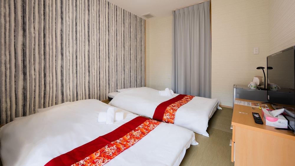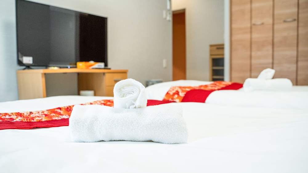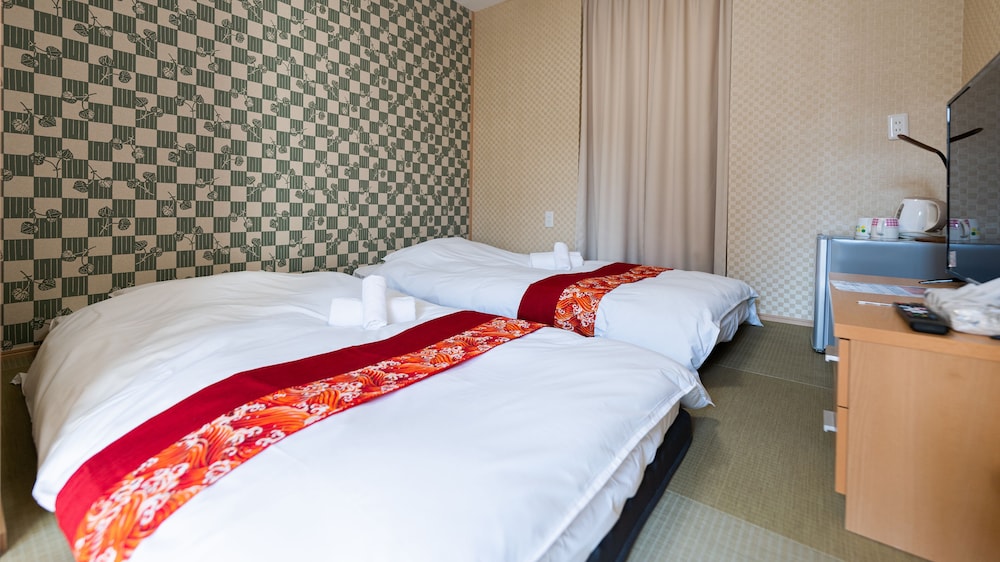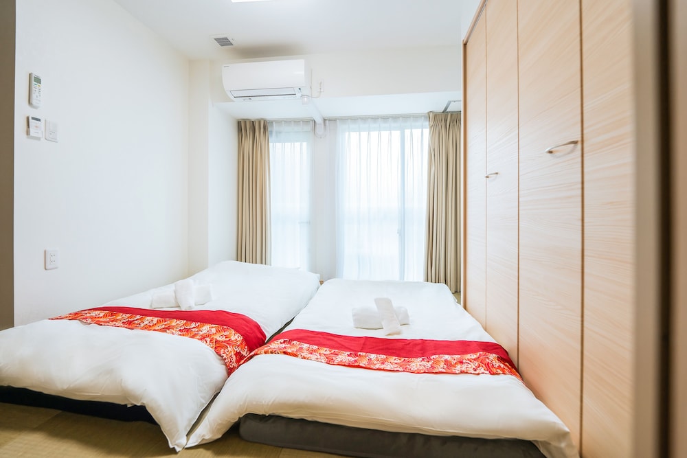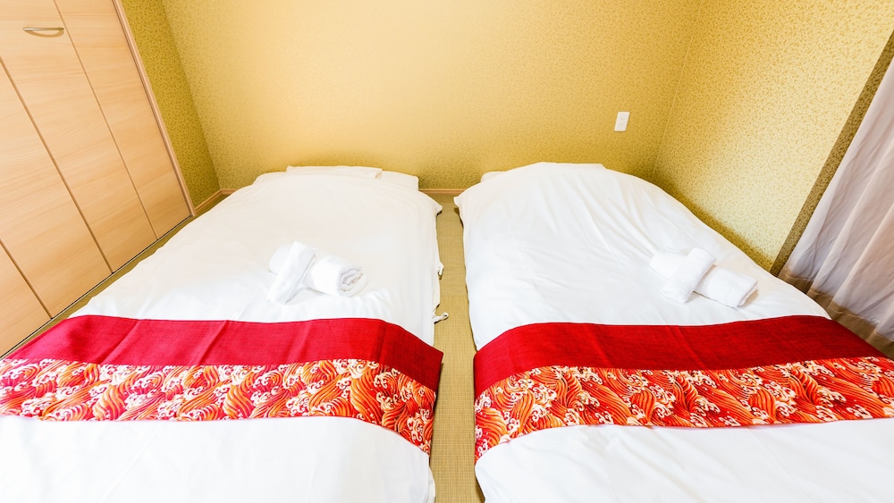 The room I picked had three beds but when we got to the room they were Japanese style on the floor beds which I didn’t pick. There is no staff at the hotel so you can’t talk to anyone about it. There wasn’t anything to do in the area but the train station was about 7 minutes walk.