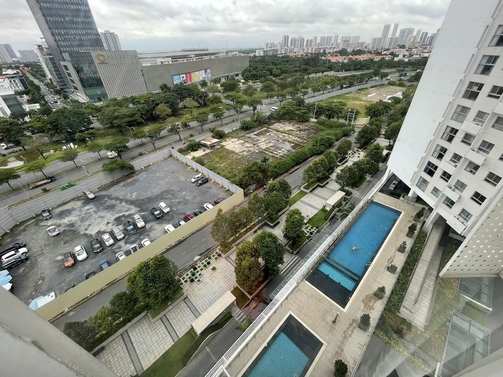 We have a nice view if the Crescent Mall and the facilities here are excellent. Two swimming pools, splash park and playground for my daughter; exercise facilities. Two stores on site and a restaurant. Being so close to the Crescent Mall is nice with some very good restaurants there and shopping if you want