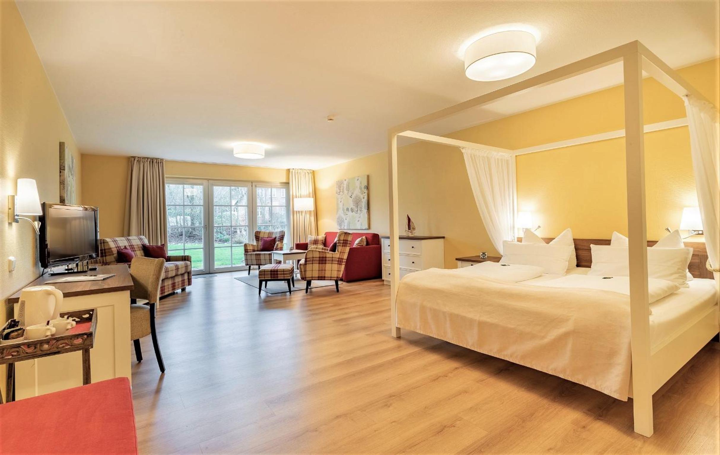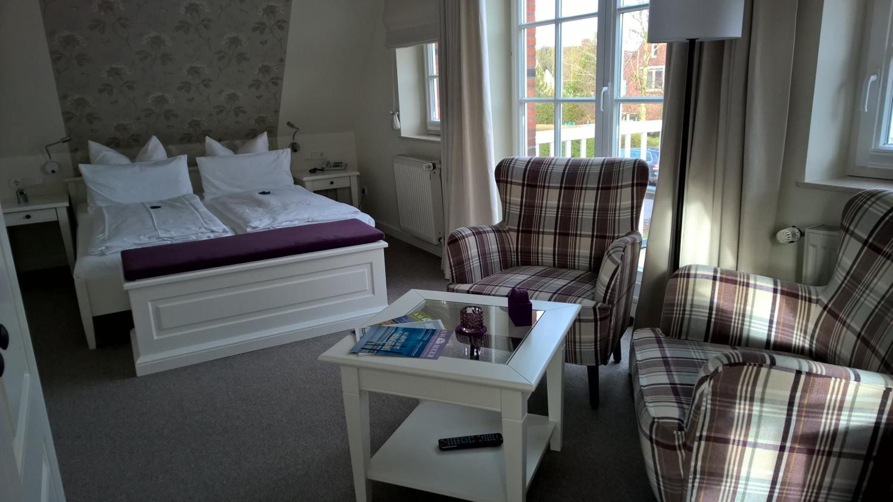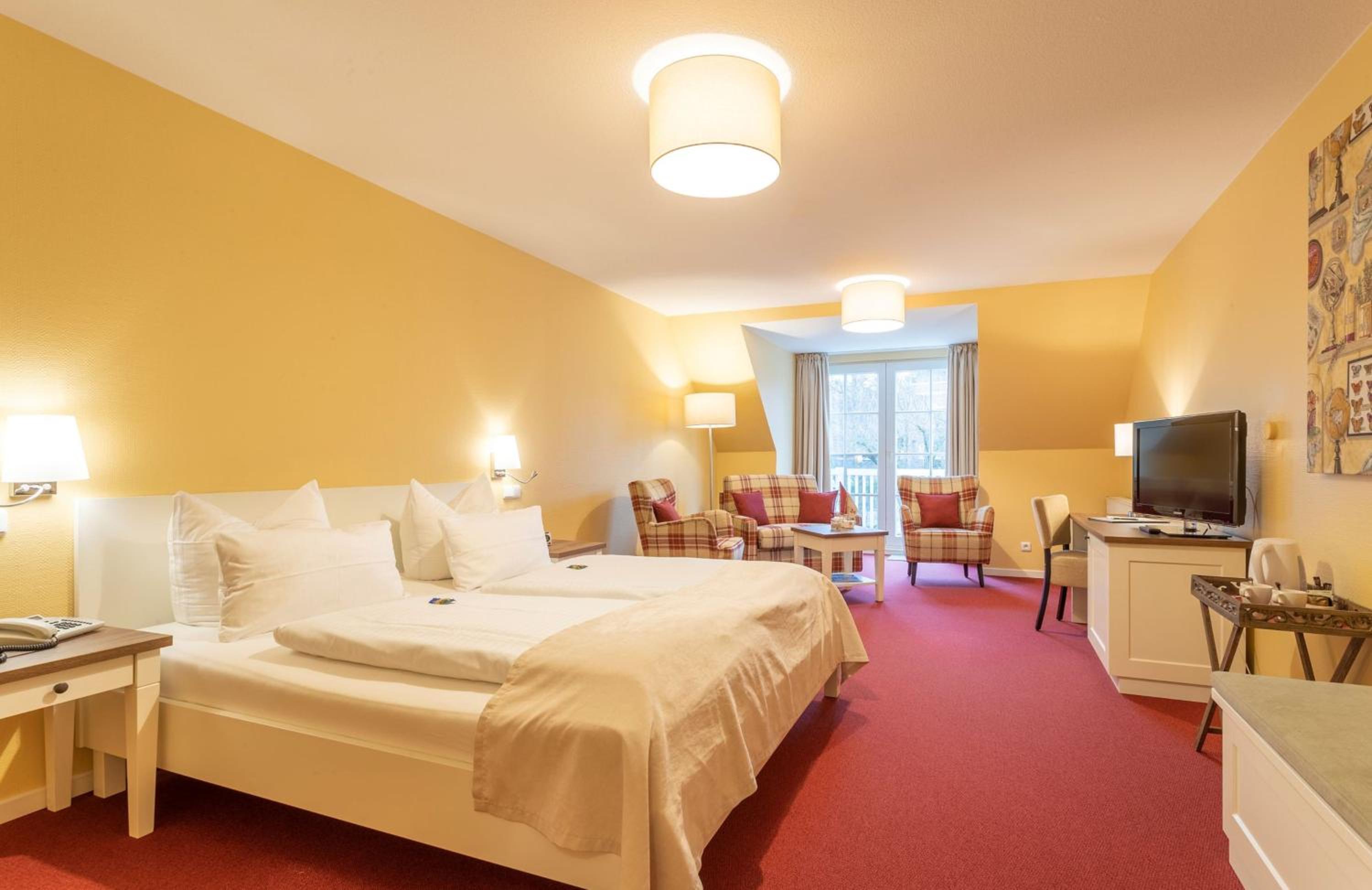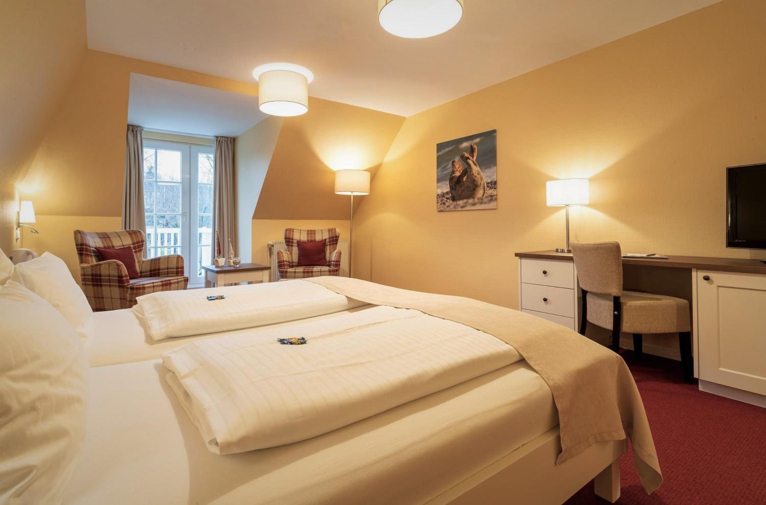 Beach Proximity and Comfortable Rooms: Enjoy a 10-minute stroll to the beach and town center from Hotel Landhaus Ellerbrock. Choose between rooms in the red or white building, each equipped with cable TV, a seating area, and most offering a balcony or terrace.