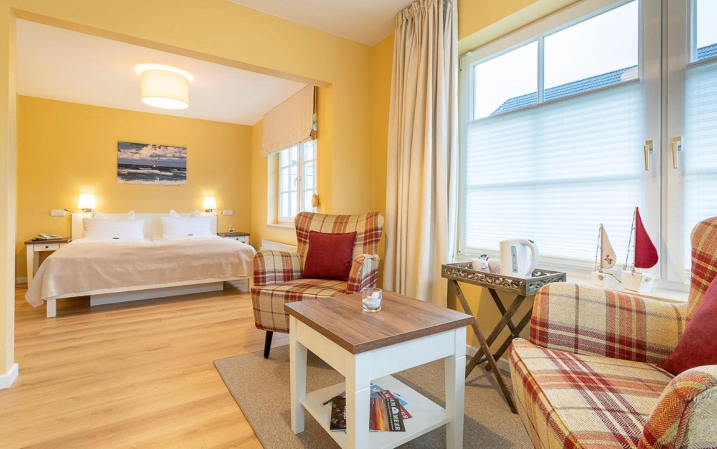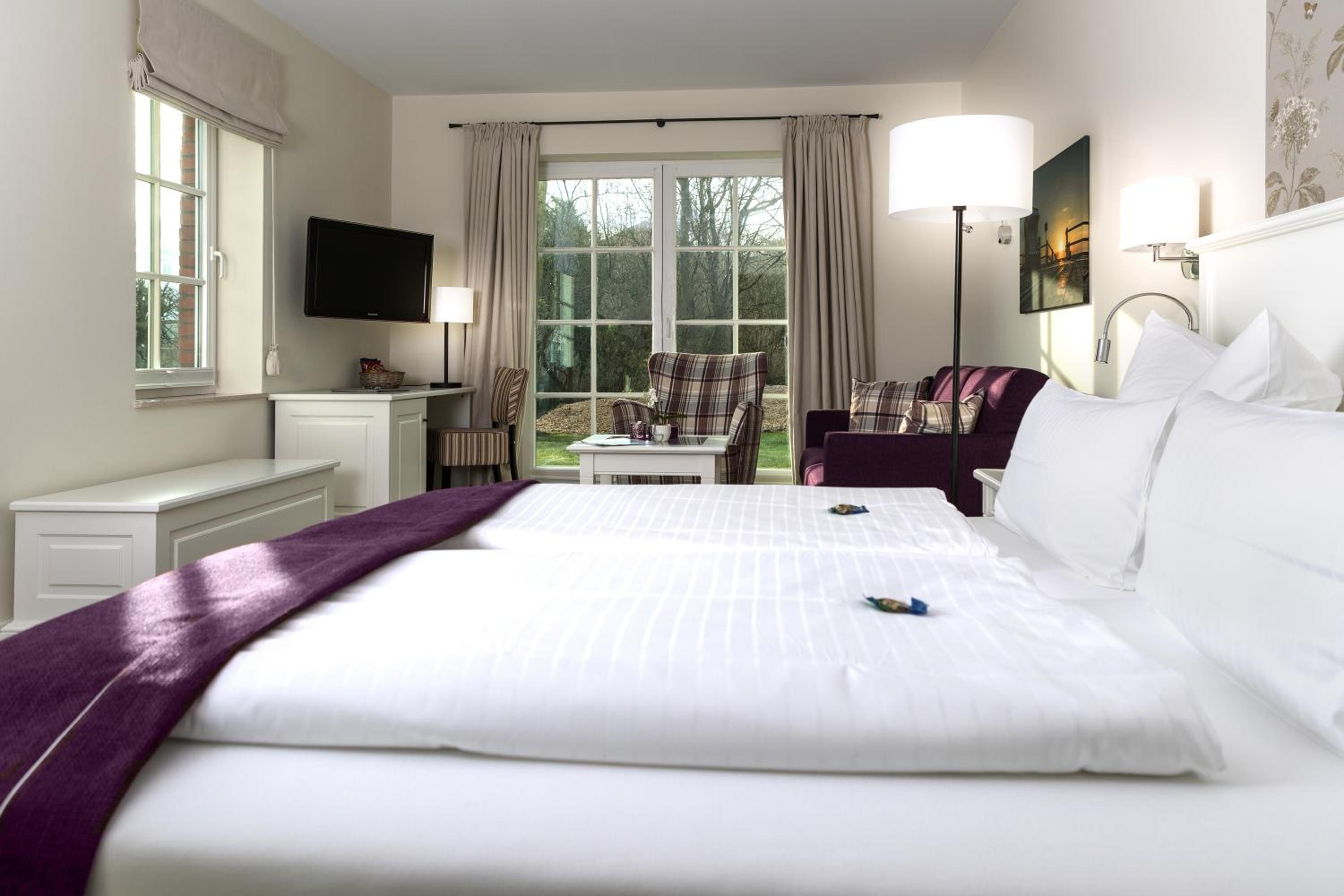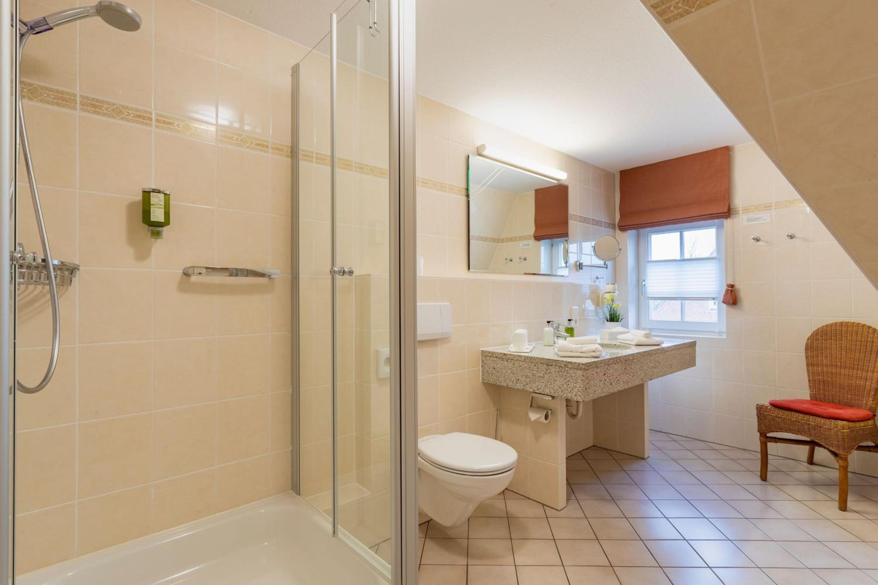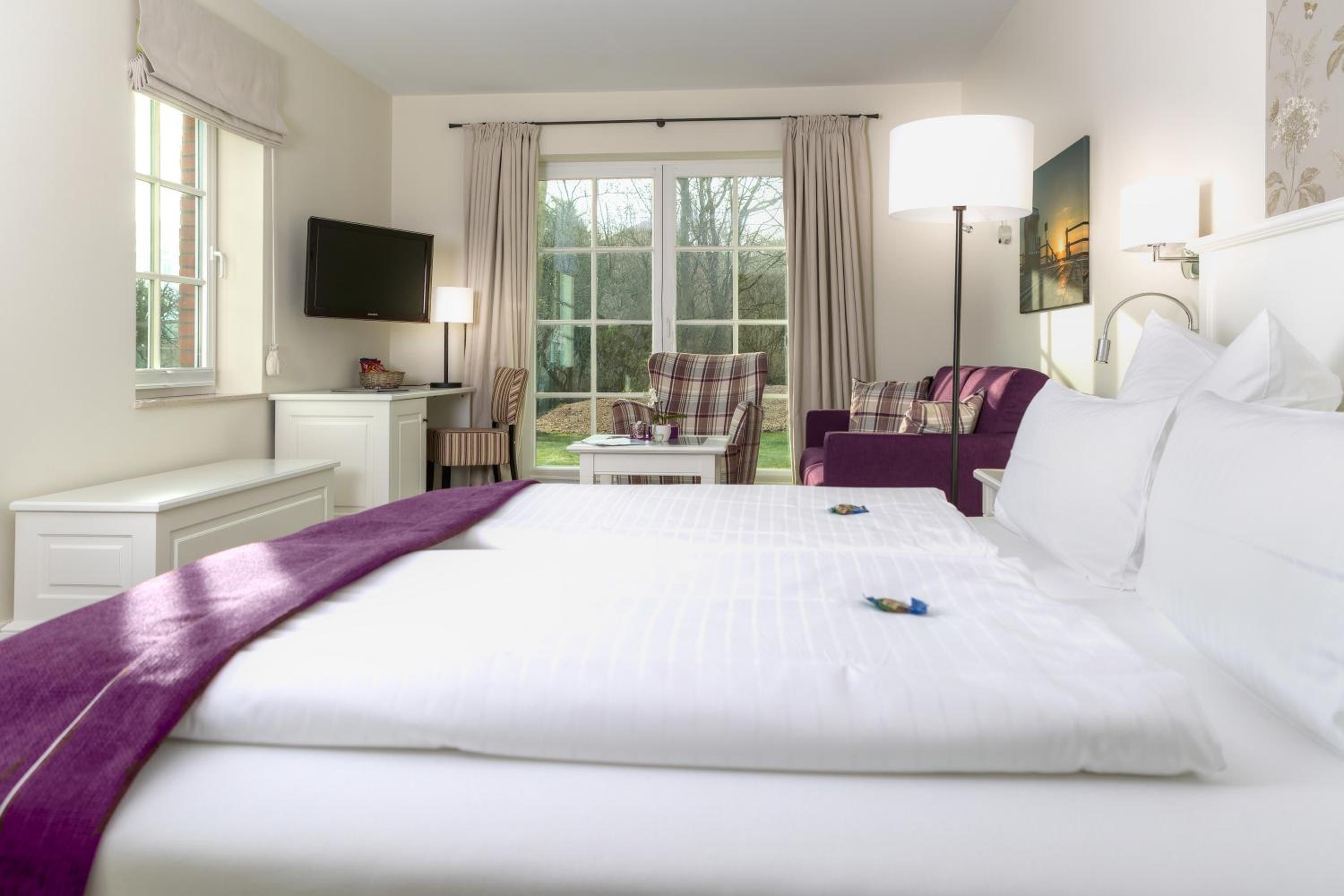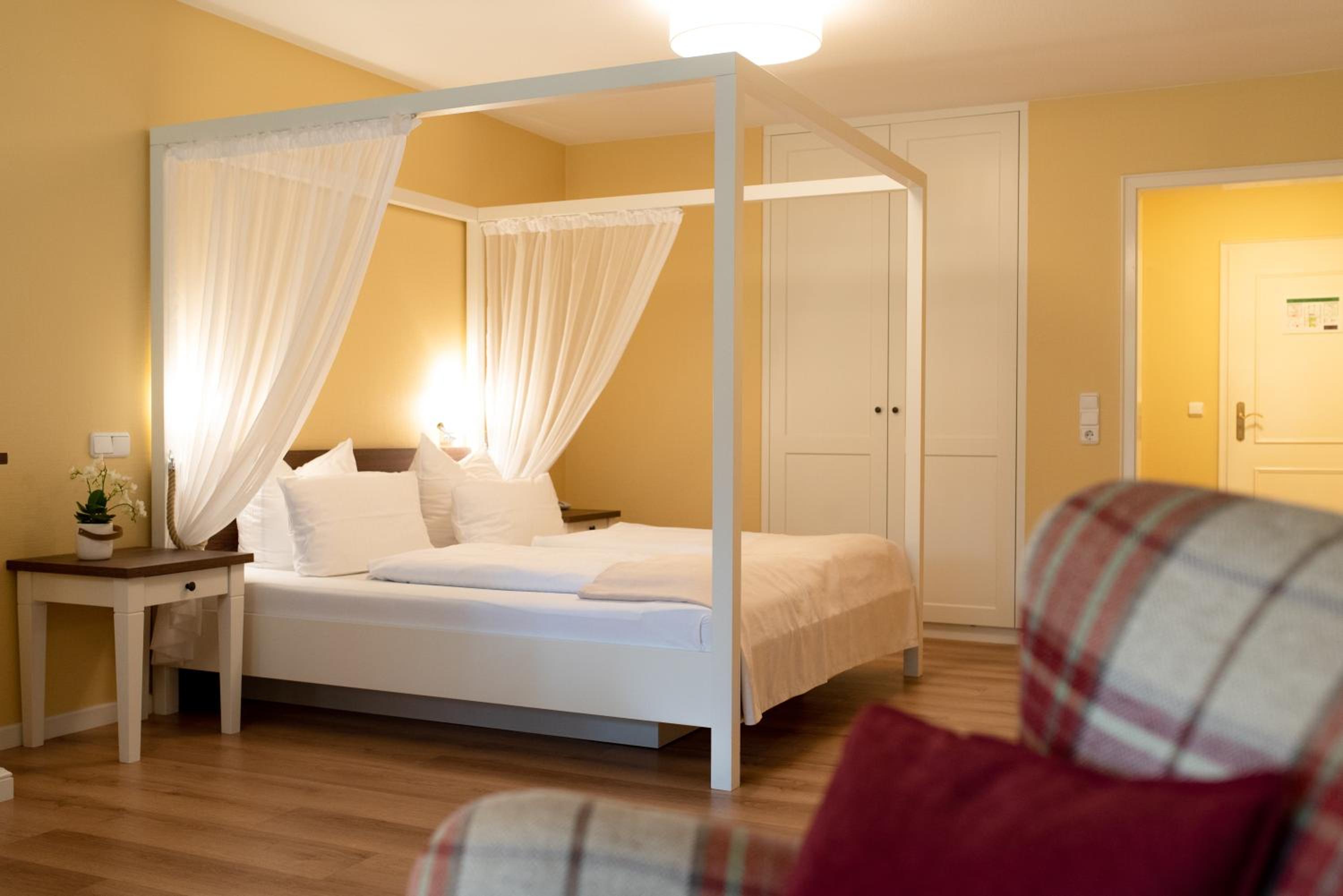 Beach Proximity and Comfortable Rooms: Enjoy a 10-minute stroll to the beach and town center from Hotel Landhaus Ellerbrock. Choose between rooms in the red or white building, each equipped with cable TV, a seating area, and most offering a balcony or terrace.