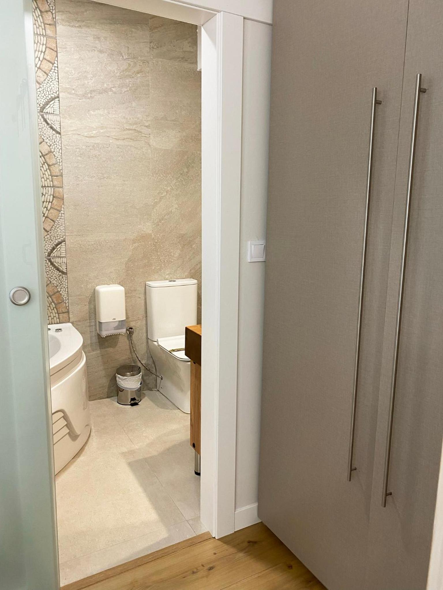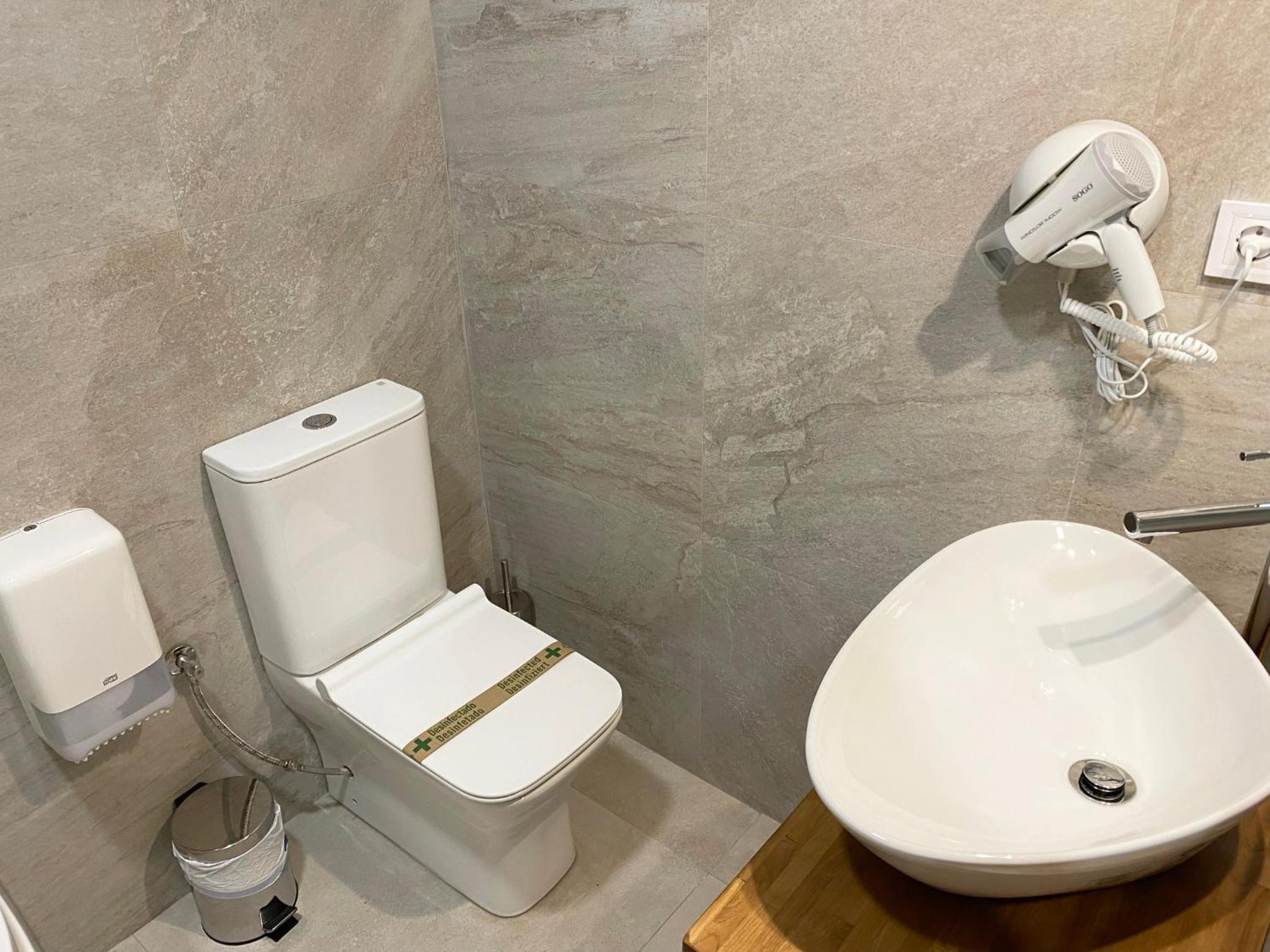 Eran dos camas separadas y había una columna, lo que dificultaba juntarlas; el aparato del rollo de papel era muy incómodo, salía el papel fatal