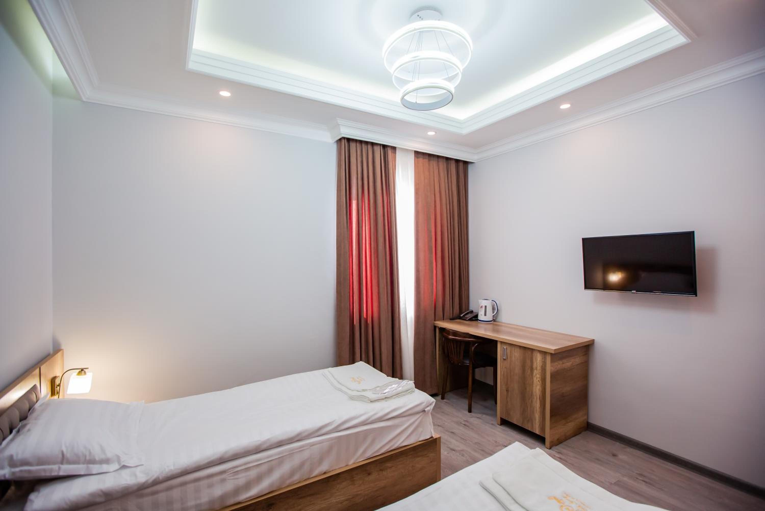 Hotel Ak Saray in Tashkent offers air-conditioned rooms with modern amenities like a flat-screen TV, safety deposit box, and private bathroom. The comfortable rooms are equipped with everything you need for a relaxing stay, including cozy bed linens and fresh towels.