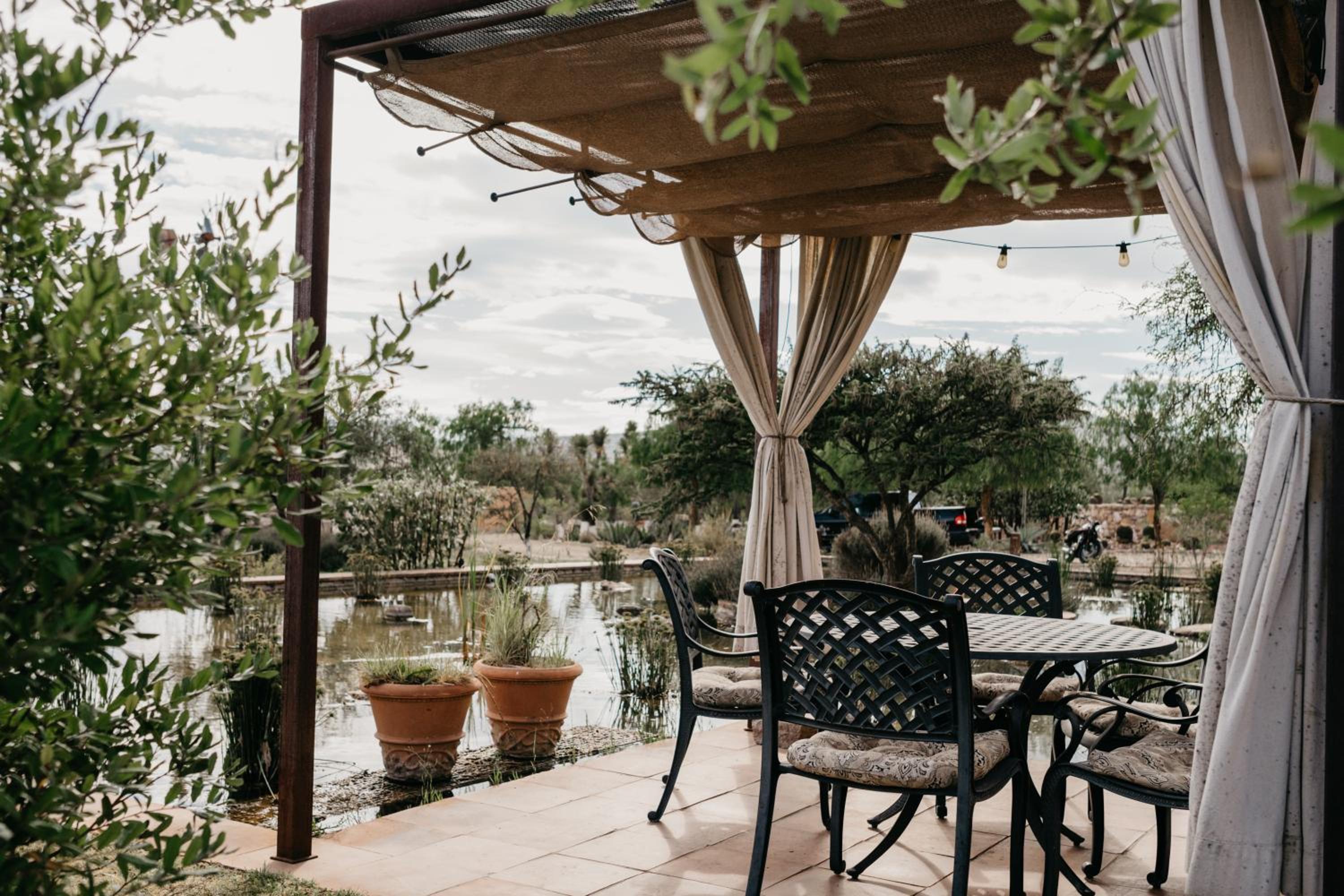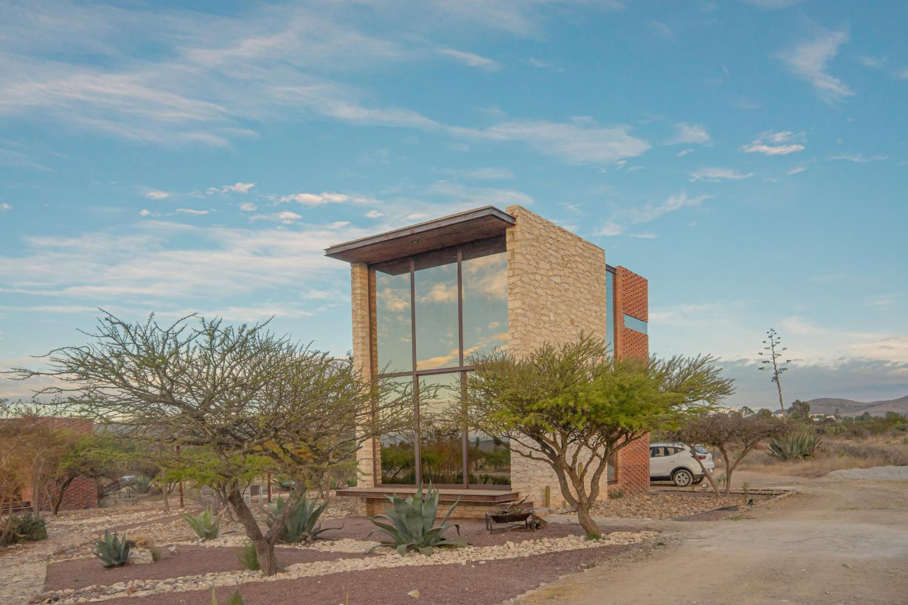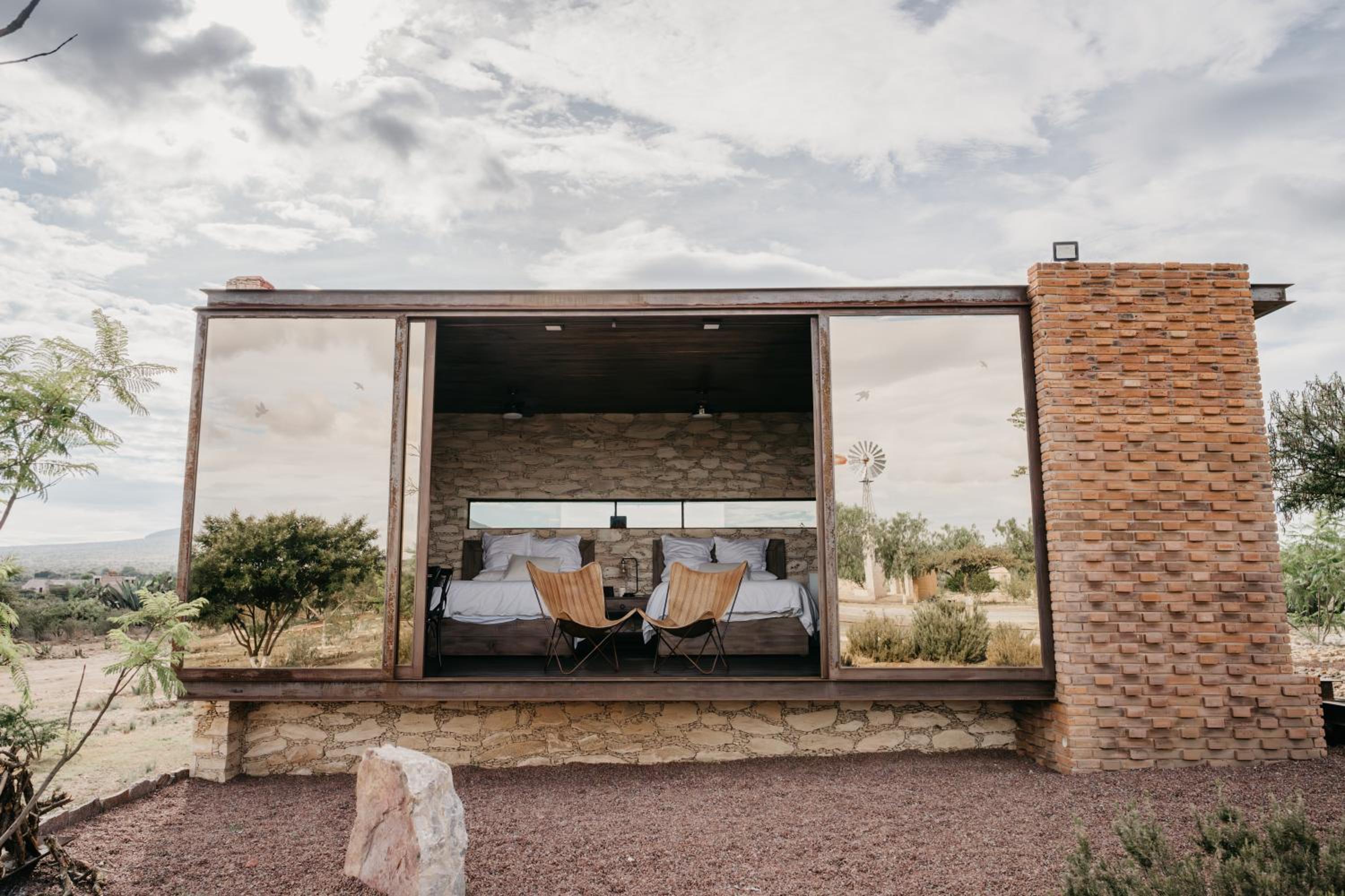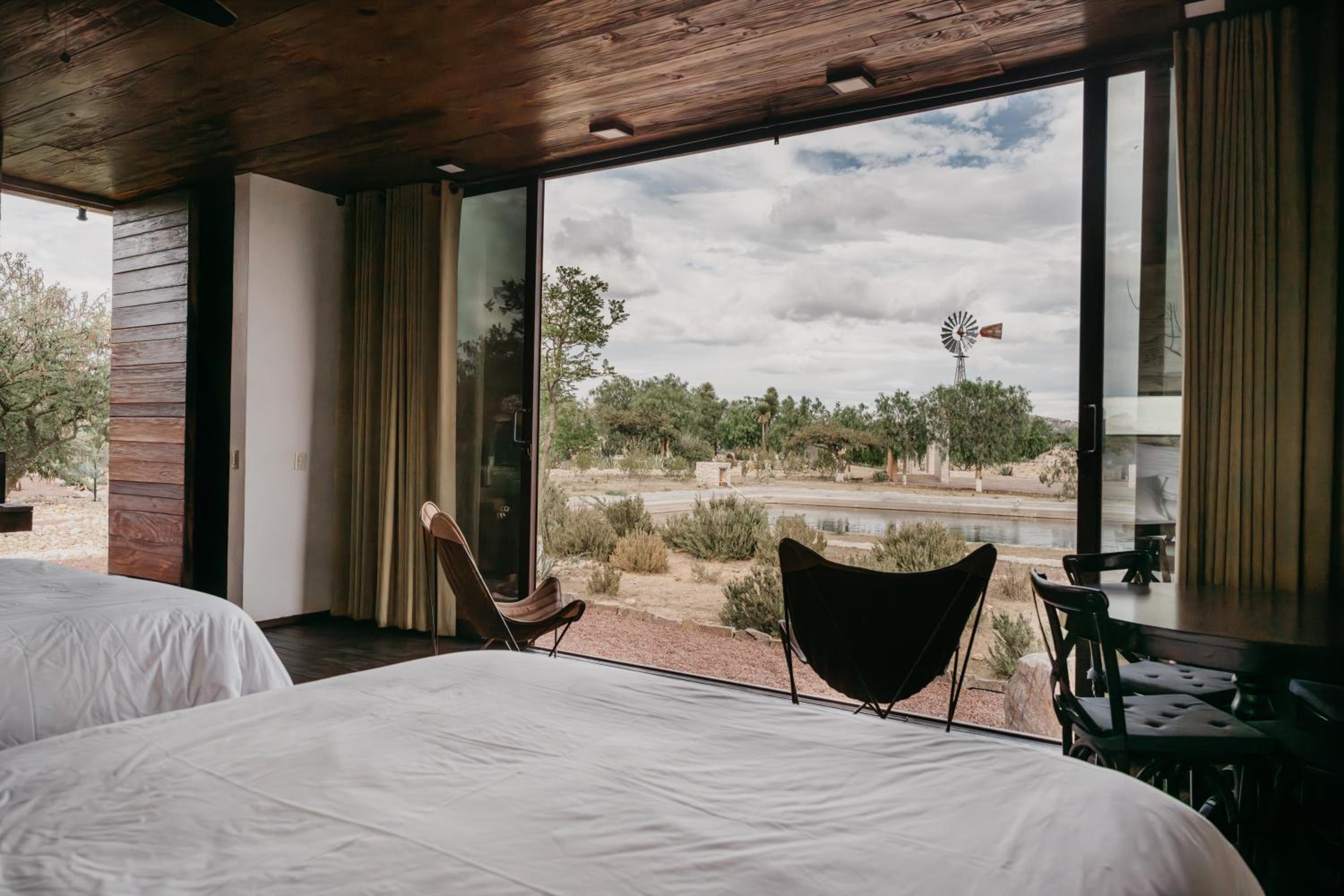 Las “habitaciones” son cabañas de estilo contemporáneo, muy cómodas y bien equipadas. Los jardines son muy hermosos y se pueden caminar tanto de día como de noche, ya que están muy bien iluminados. No hay restaurante en la propiedad, pero hacen muy buenas recomendaciones en Mineral de Pozos, a solo 5 minutos en auto.
