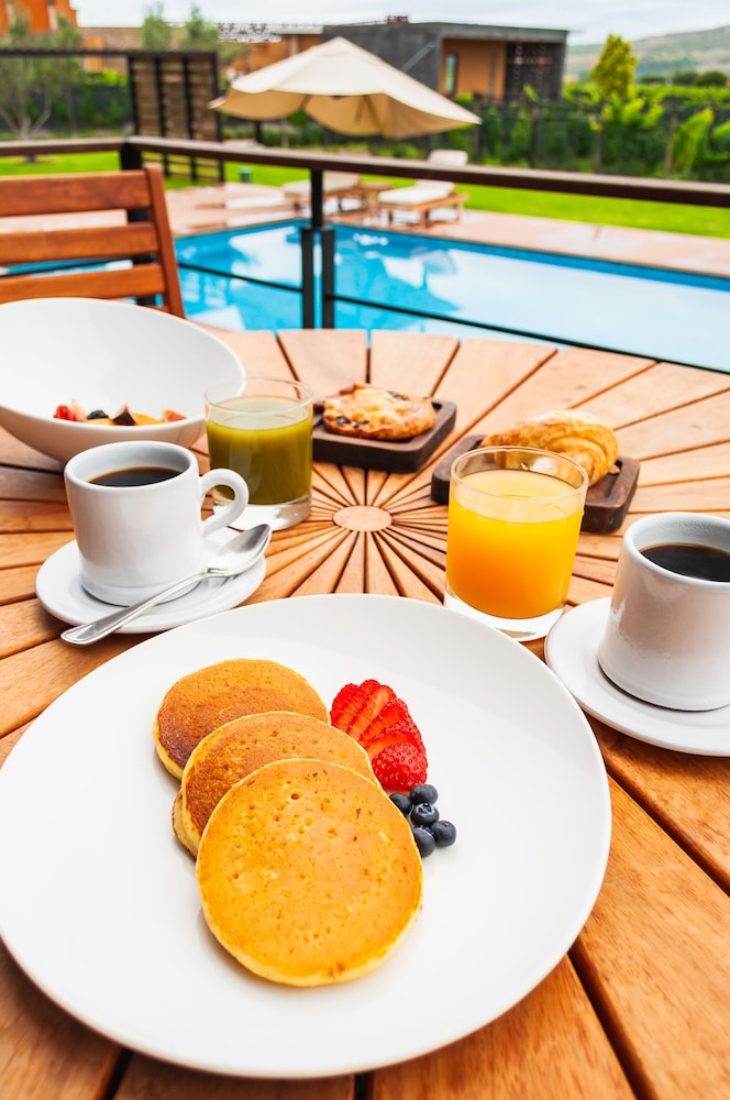 Great hotel in the middle of the vineyards. Rooms are like private cabins with a private terrace. The pool area is very nice and has great views, especially for sunsets. Food is good and the wine is nice and available in their shop. Only downside is the restaurant closing at 8pm