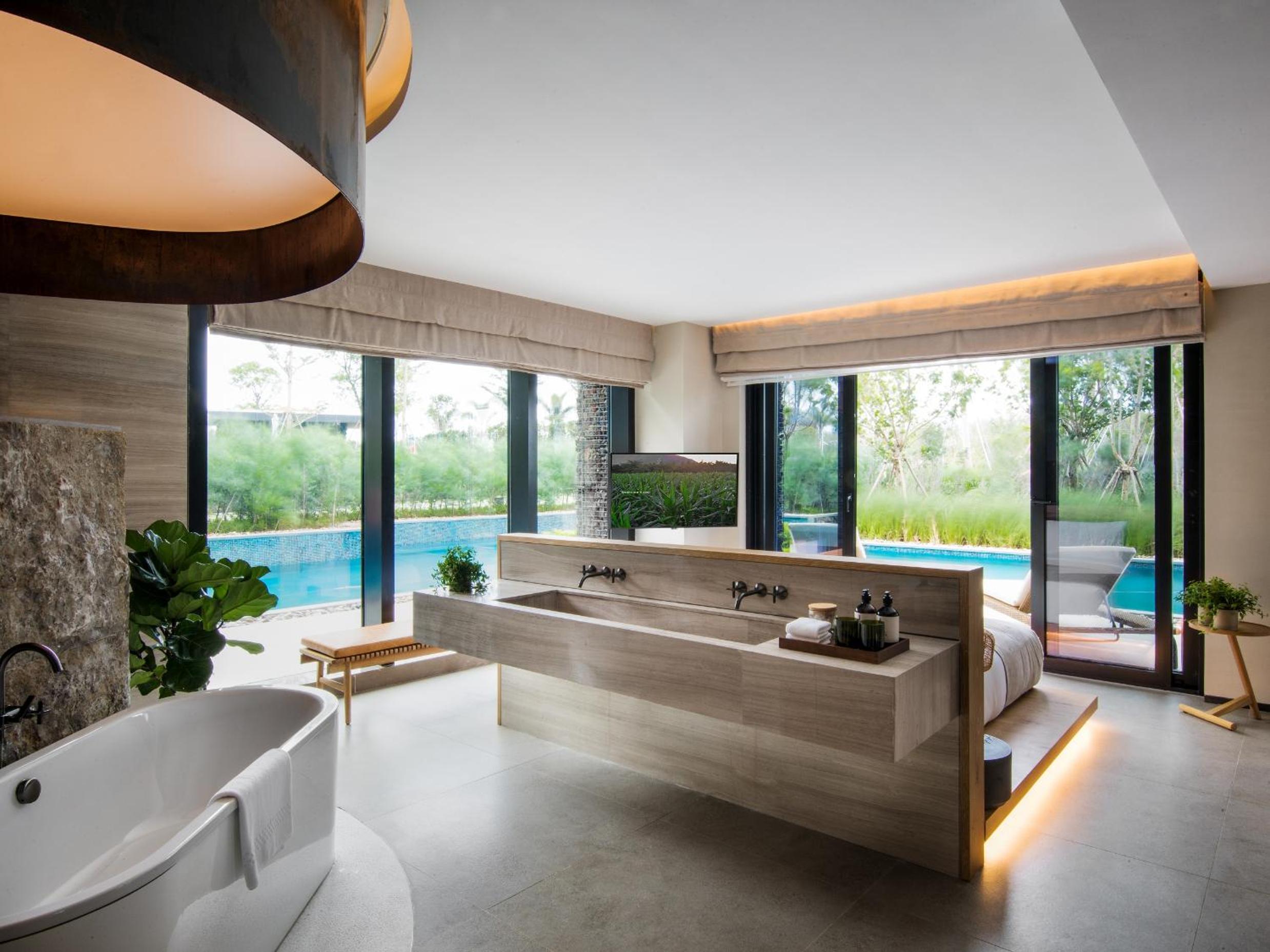 1 Hotel Haitang Bay, Sanya offers a range of luxurious amenities including an outdoor swimming pool, fitness centre, and a hot tub in every room. Guests can enjoy stunning views of the garden, poolside, or ocean from the comfort of their accommodation.