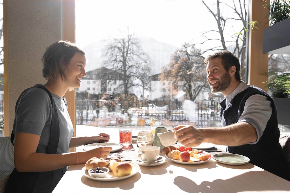 Luxurious and modern. Beautiful rooms and absolutely stunning spa (still dreaming of the spa a month later!). Lovely tranquil ambience. Great breakfast. Very convenient short walk (5 mins) to train station, town centre and busses to slopes.