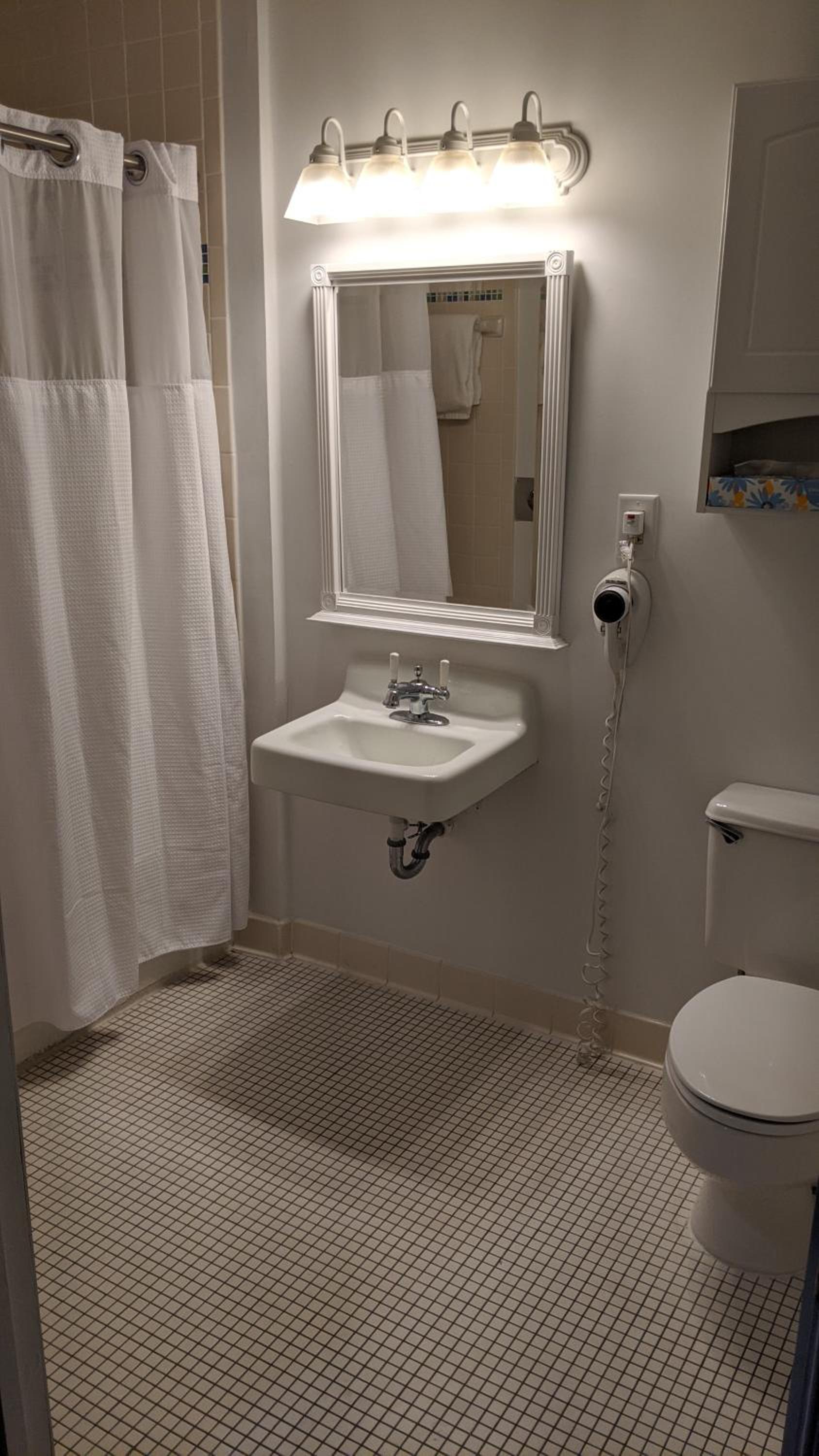 The bathroom could be modernized.