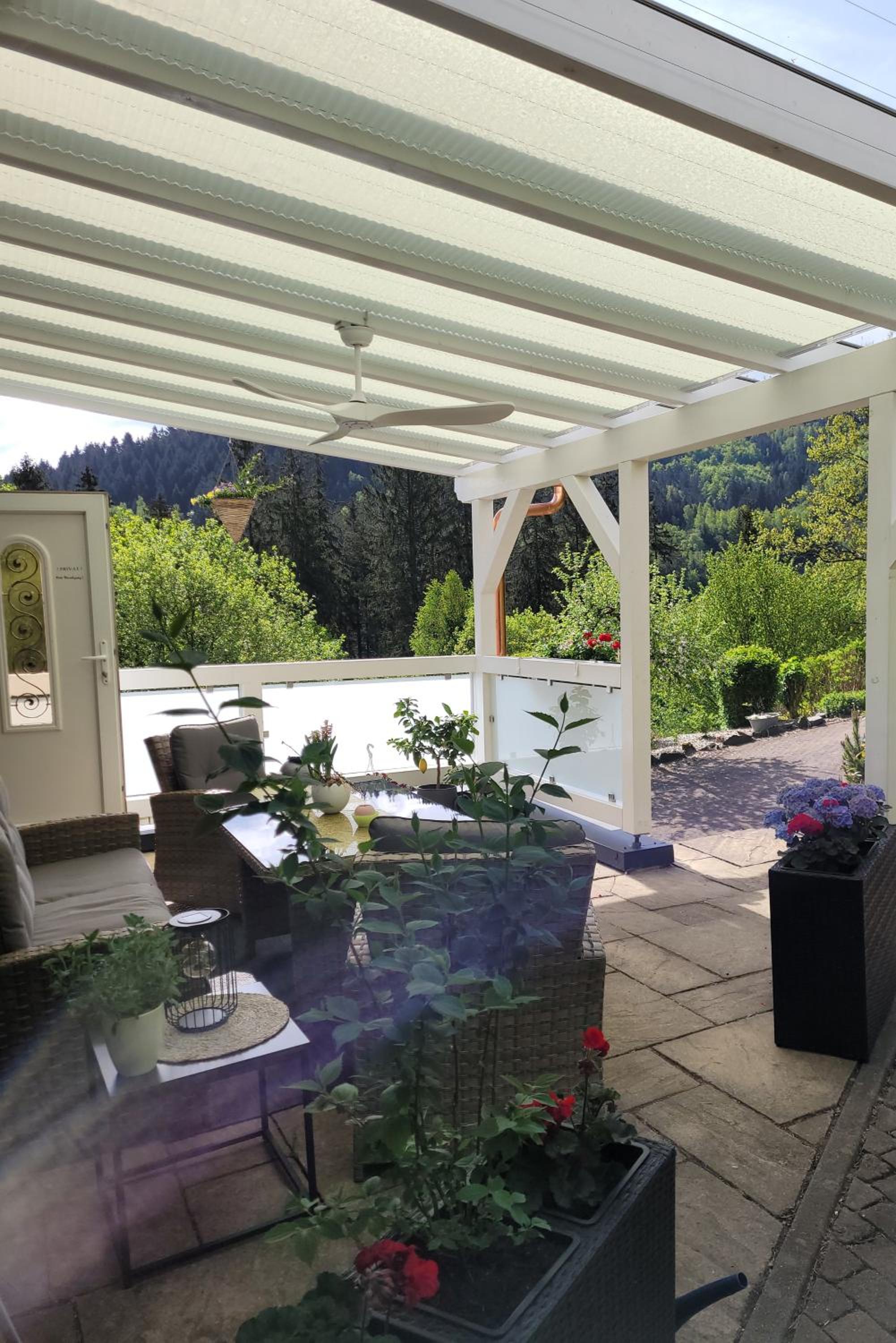 Über die Terrasse hatten wir ein tollen Ausblick und die Vermieterin wahr super nett.Tolles Frühstück.