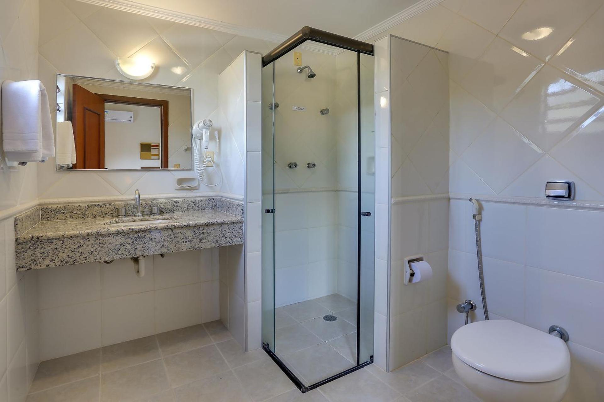 Quarto amplo…Ótimo banheiro e muito bem organizado.