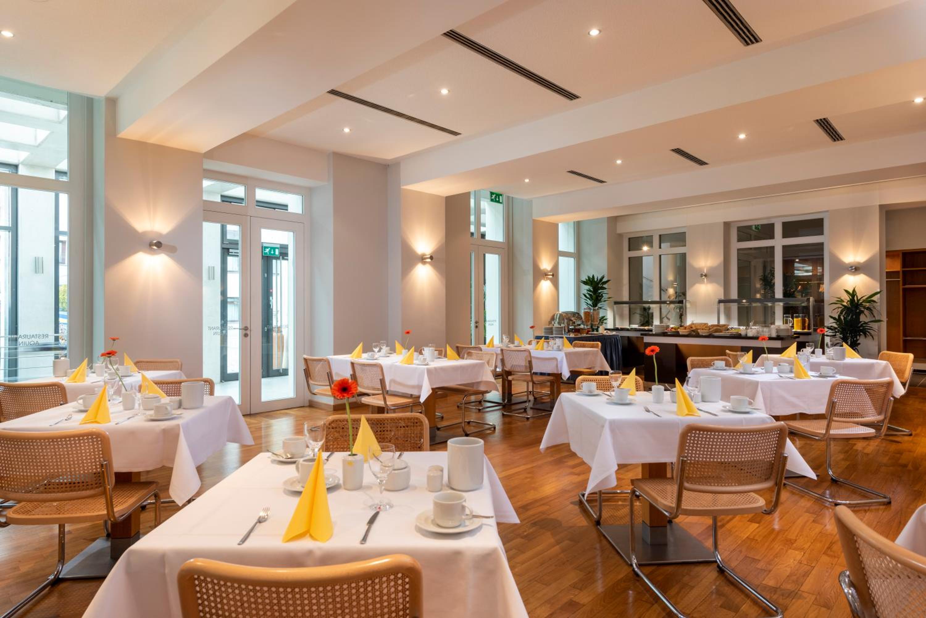 The 3-star Superior Hotel Aquino is situated in the heart of Berlin's central Mitte district, just a stone's throw away from the vibrant Friedrichstrasse shopping street. With the Oranienburger Tor underground and tram stops a mere 4-minute walk away, exploring the city couldn't be more convenient.