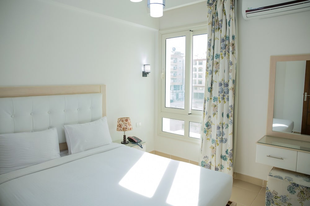 This is a great value for money stay in Hurghada. PROS: The room was very spacious and clean and it had a small kitchen fully equipped to cook with cookware, the suites give you a beach access free of charge and the beach is across the street. The area can be significantly noisy at night and the a/c didn't particularly work so even though it was on, we were really warm.