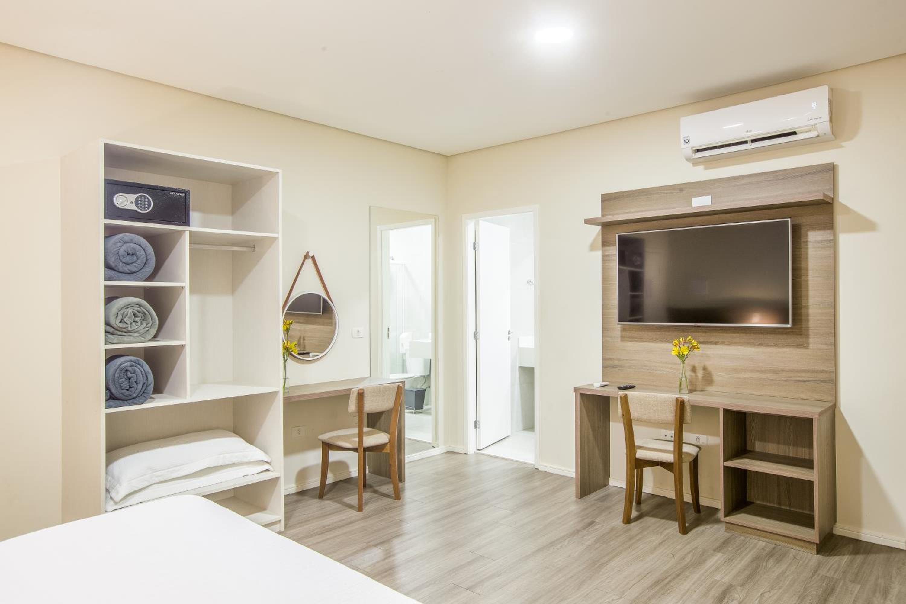 O quarto merecia uma manutenção melhor. Ar condicionado faz muito barulho, o banheiro poderia ser limpo com água sanitária, para eliminar o lodo que fica nos rejuntes. Mas o espaço é adequado. São coisas que não influenciam na estadia.