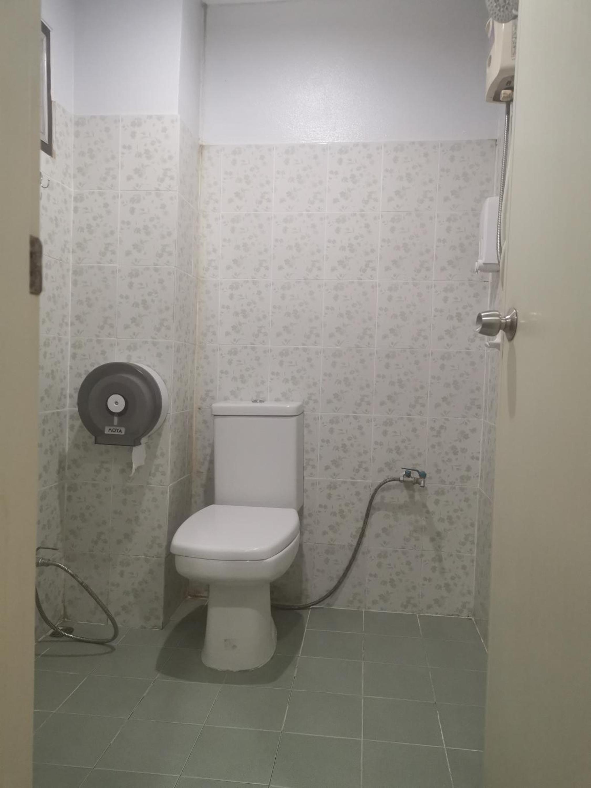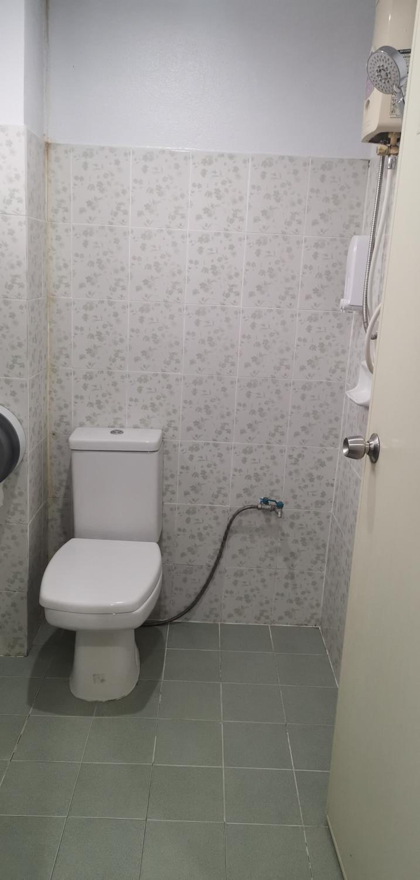 共用衛浴有三間,一間燈泡壞的,另外兩間的熱水器是沒有連上的,唯一一間有連著熱水器的卻無法產生一丁點的熱水,明明電源燈是亮著的,所以我沒洗澡就睡了。