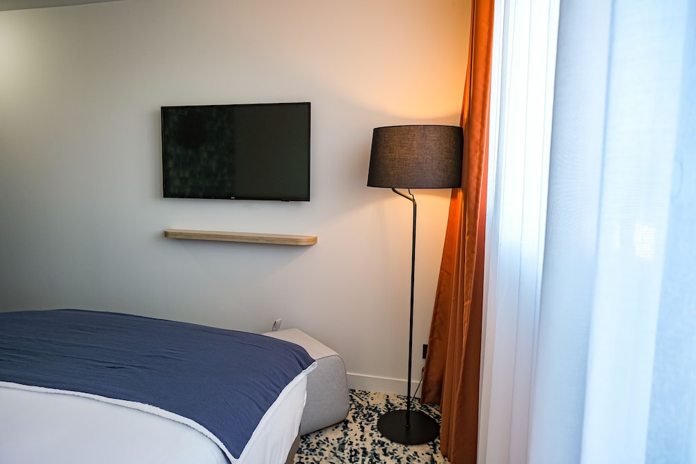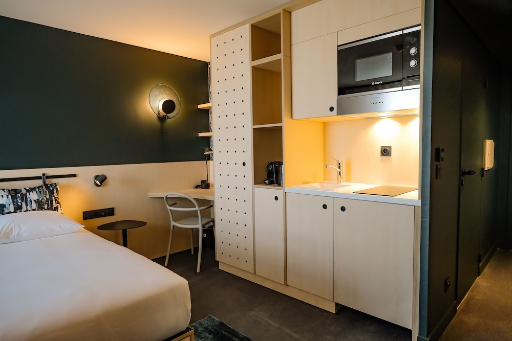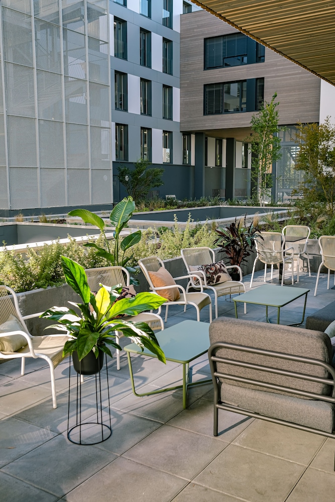 Nyere, moderne hotell et stykke unna Bordeaux sentrum, ved en liten innsjø. Koselig restaurant og hyggelig personale. Bassenget er veldig lite, og bassengområdet har kun plass til noen få solsenger. Vi bodde i en leilighet med plass til 4, som hadde en fin planløsning med gang og bad mellom soverom og et rom med kombinert kjøkken/stue med sovesofa. Rent og pent. Lite hybelkjøkken slik at man kunne ordne seg enkel mat. Det er lite å gjøre i området rett rundt hotellet, annet enn å være på stranda ved innsjøen, så her trenger du enten bil eller ta trikken. Det tok ca 7 min å gå til nærmeste trikkestopp. Området rundt selve trikkestoppet fremsto litt slitent og «øde», og vi leste en artikkel om at bydelen hadde opplevde en økning i kriminalitet. Vi følte oss ikke utrygge, men jeg tror ikke jeg ville gått alene mellom trikkeholdeplassen og hotellet seint på kvelden. Selve trikketuren til sentrum tok 10-15 min. Matbutikk i gangavstand til hotellet.