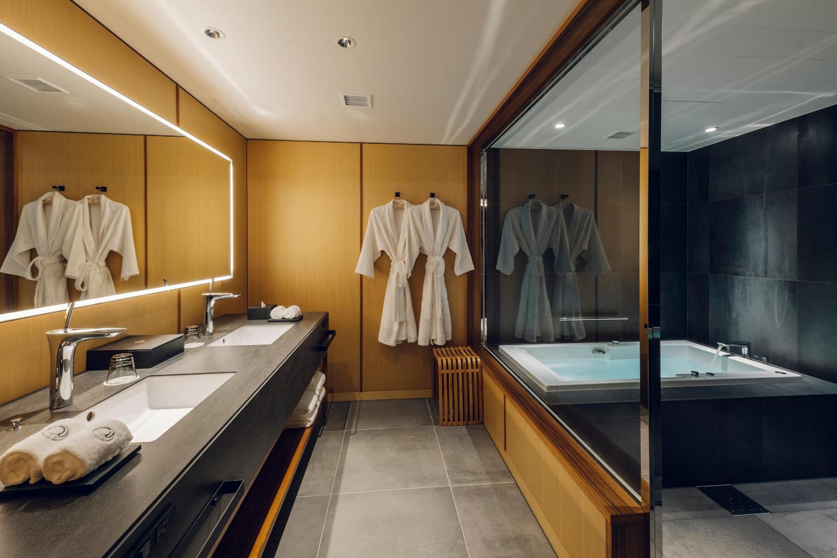 Indulge in our 5-star accommodation with a private hot tub in every room. Relax in comfort with air conditioning, a flat-screen TV, and free WiFi.