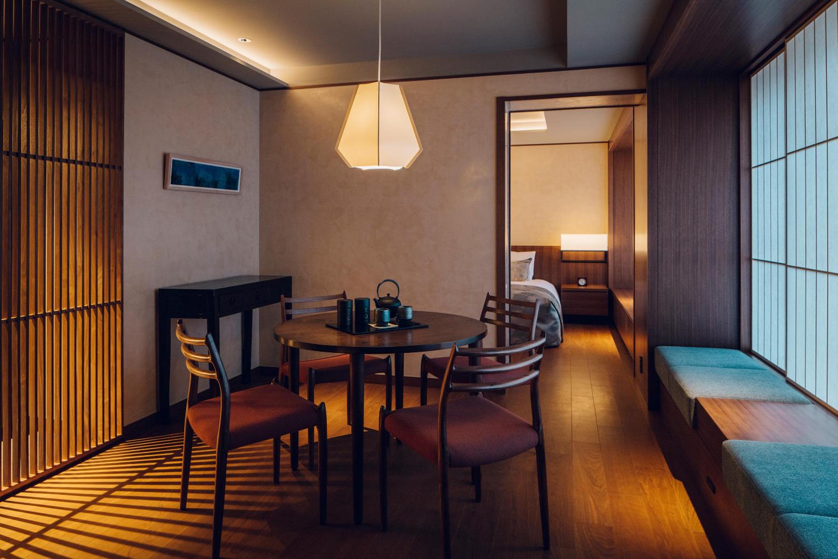 門をくぐった時から始まる素晴らしいもてなしと、シンプルで和モダンな館内室内が心を落ち着かせてくれます。観光ではなくここでの時間を過ごすためだけに訪問しました。広く清潔な室内は、静かな時間を過ごすにふさわしい。いずみでの夕食をいただきました。旬の食材に手間をかけたそれぞれの料理、特に八寸は注目に値します。日本酒も楽しめて、とても若いスタッフですが細かな気遣いがとてもよい。英語も中国語も使えます。また行きたい