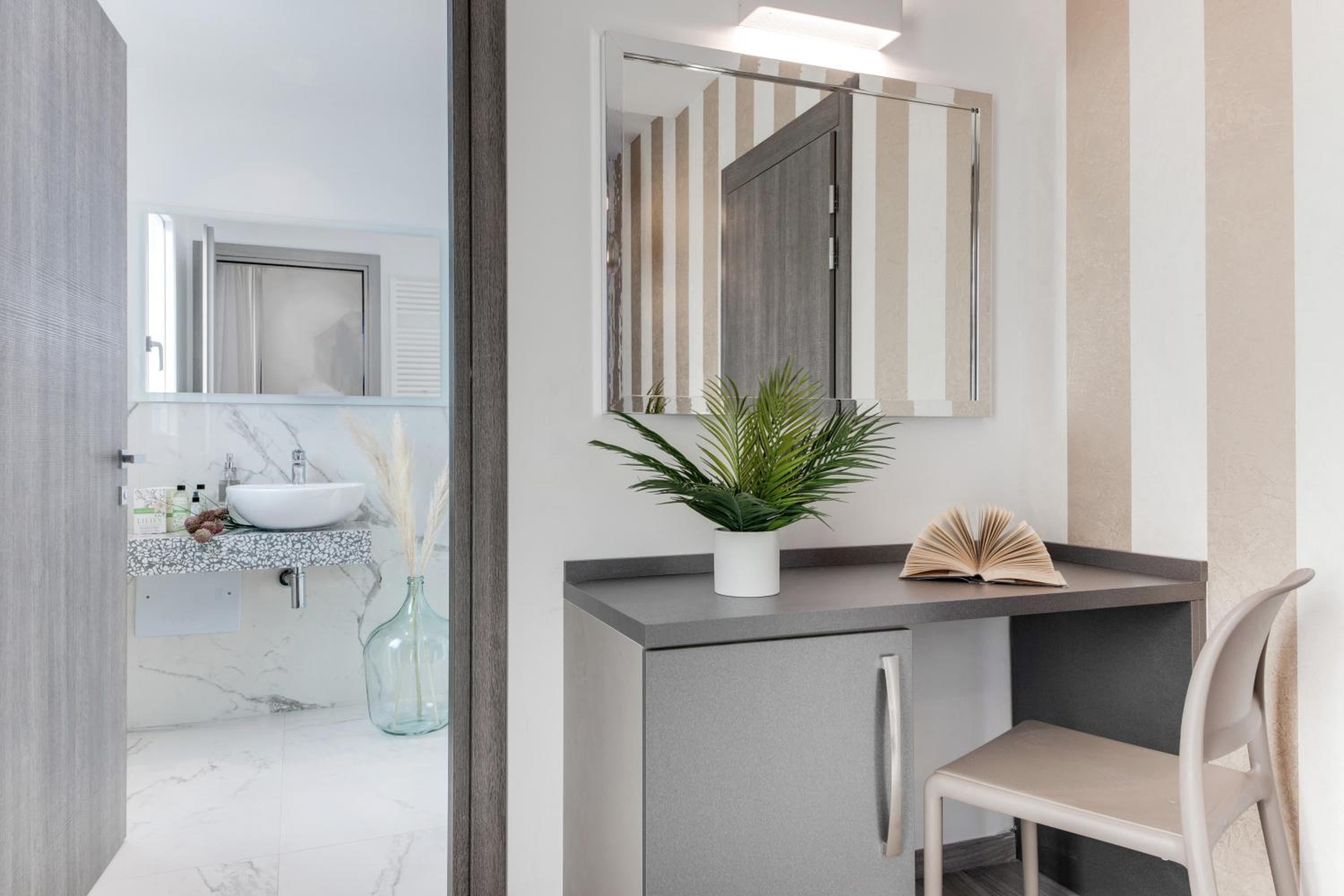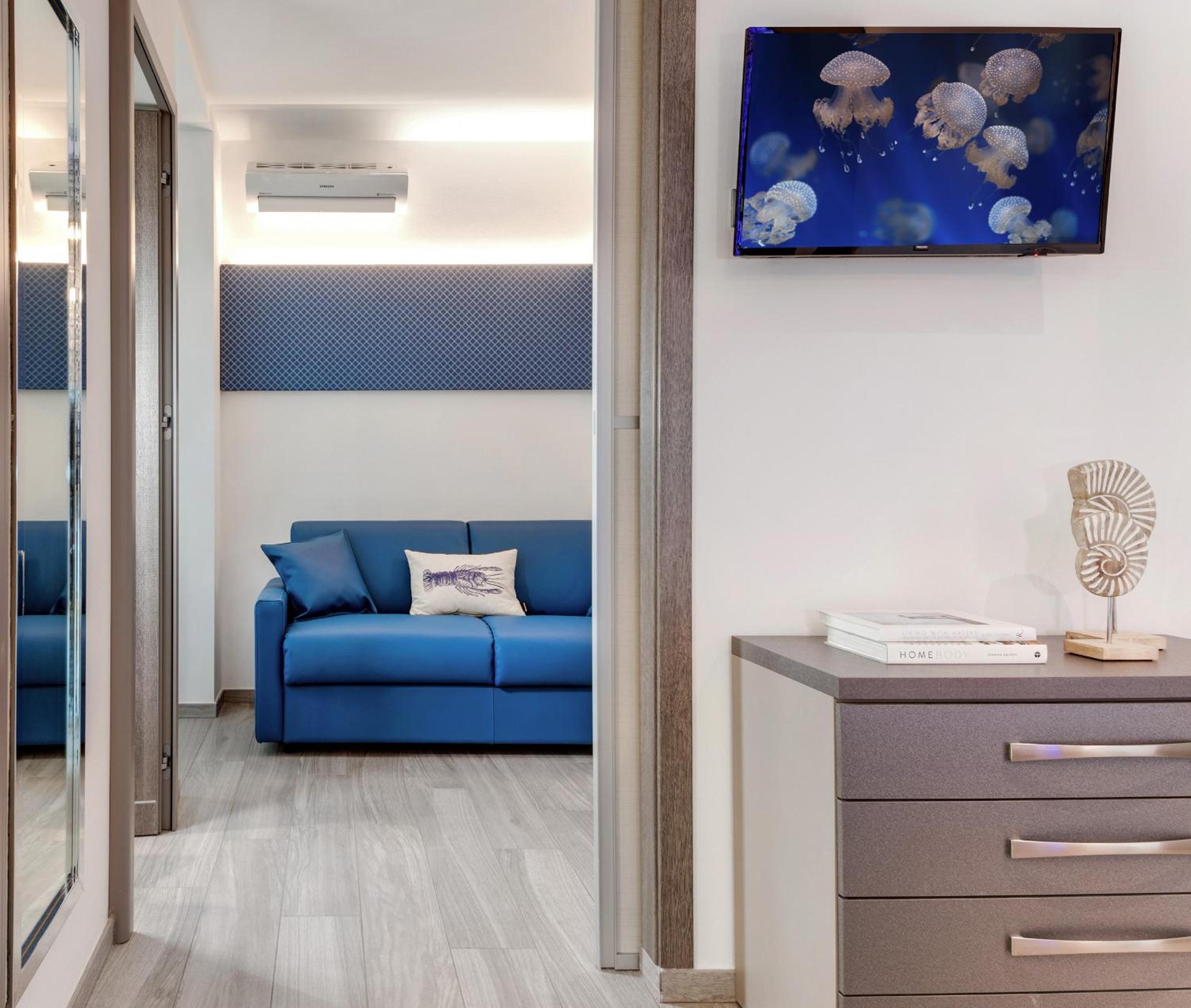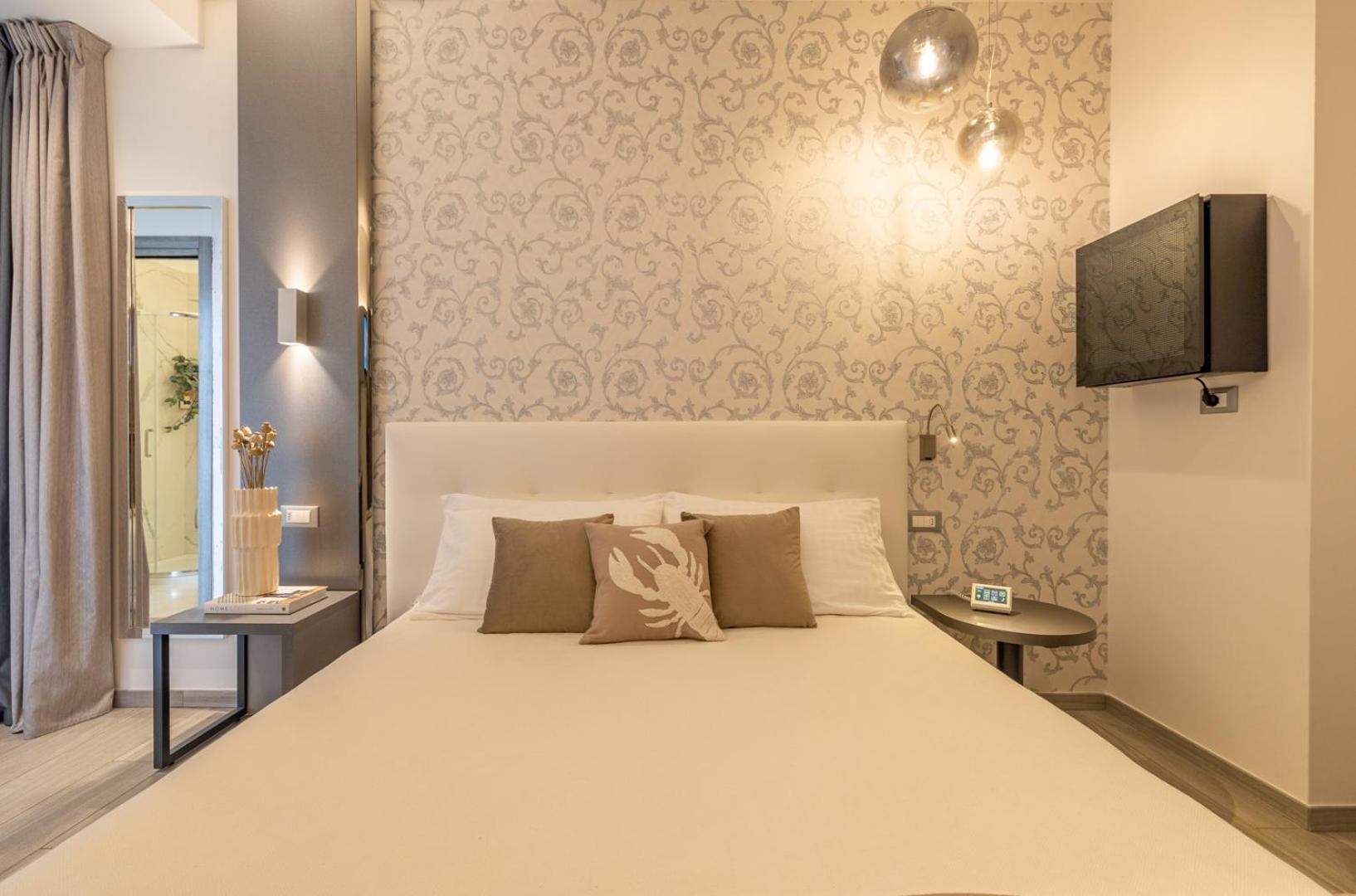 Romagna Suite Hotel in Gatteo a Mare offers elegant rooms with modern amenities like flat-screen TVs, air conditioning, and private bathrooms. Some rooms even feature balconies for a stunning view.
