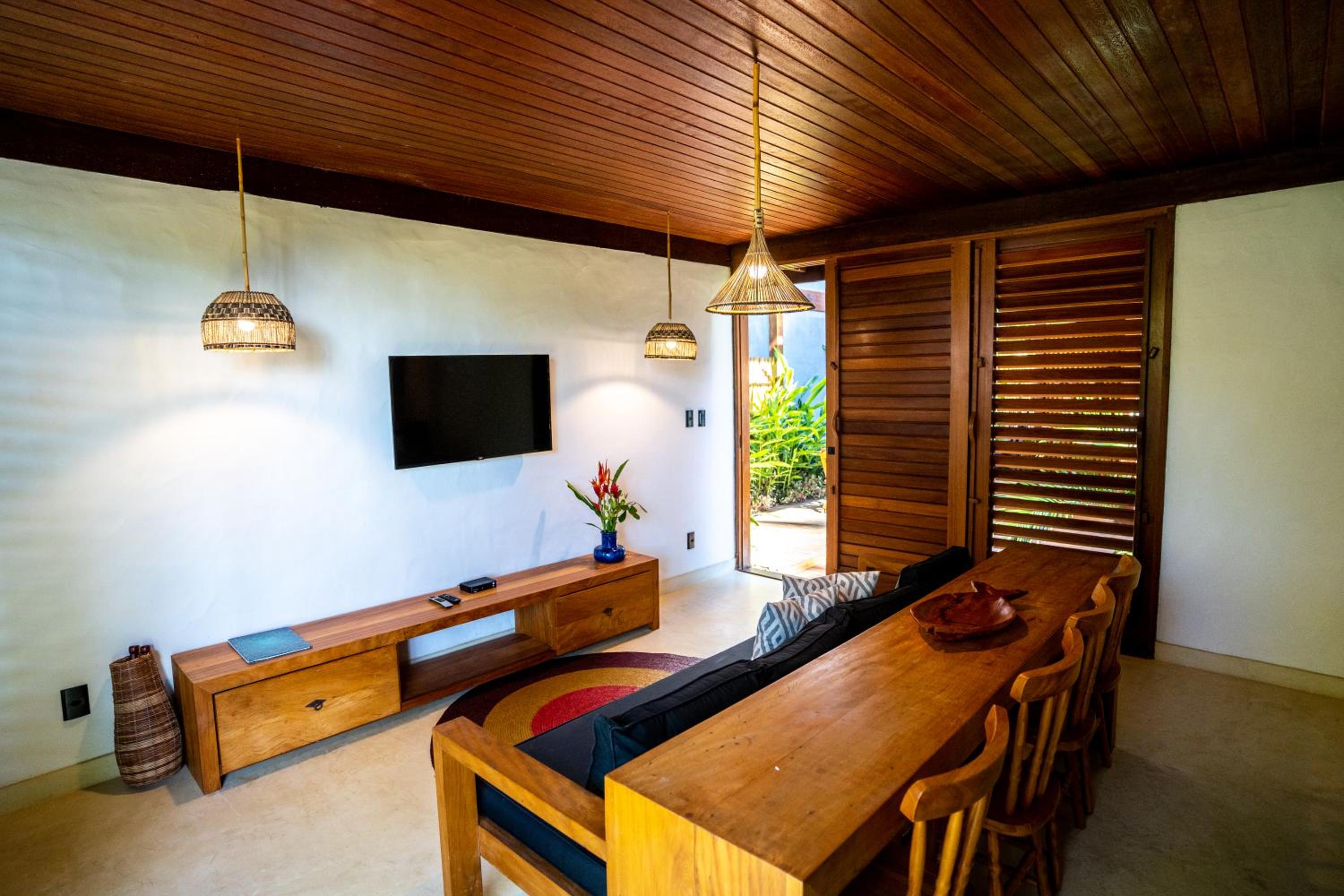 Falha grave não ter ar-condicionado na sala, apenas nos quartos. Ambientes fechados sem ar-condicionado na Bahia são impraticáveis na minha opinião. O sofá da sala era muito ruim de se sentar. Outro ponto que acho que deviam melhorar é que havia poucas sobras na beira da praia. Isso, aliado ao fato de os móveis de praia serem muito pesados também causou algum desconforto.