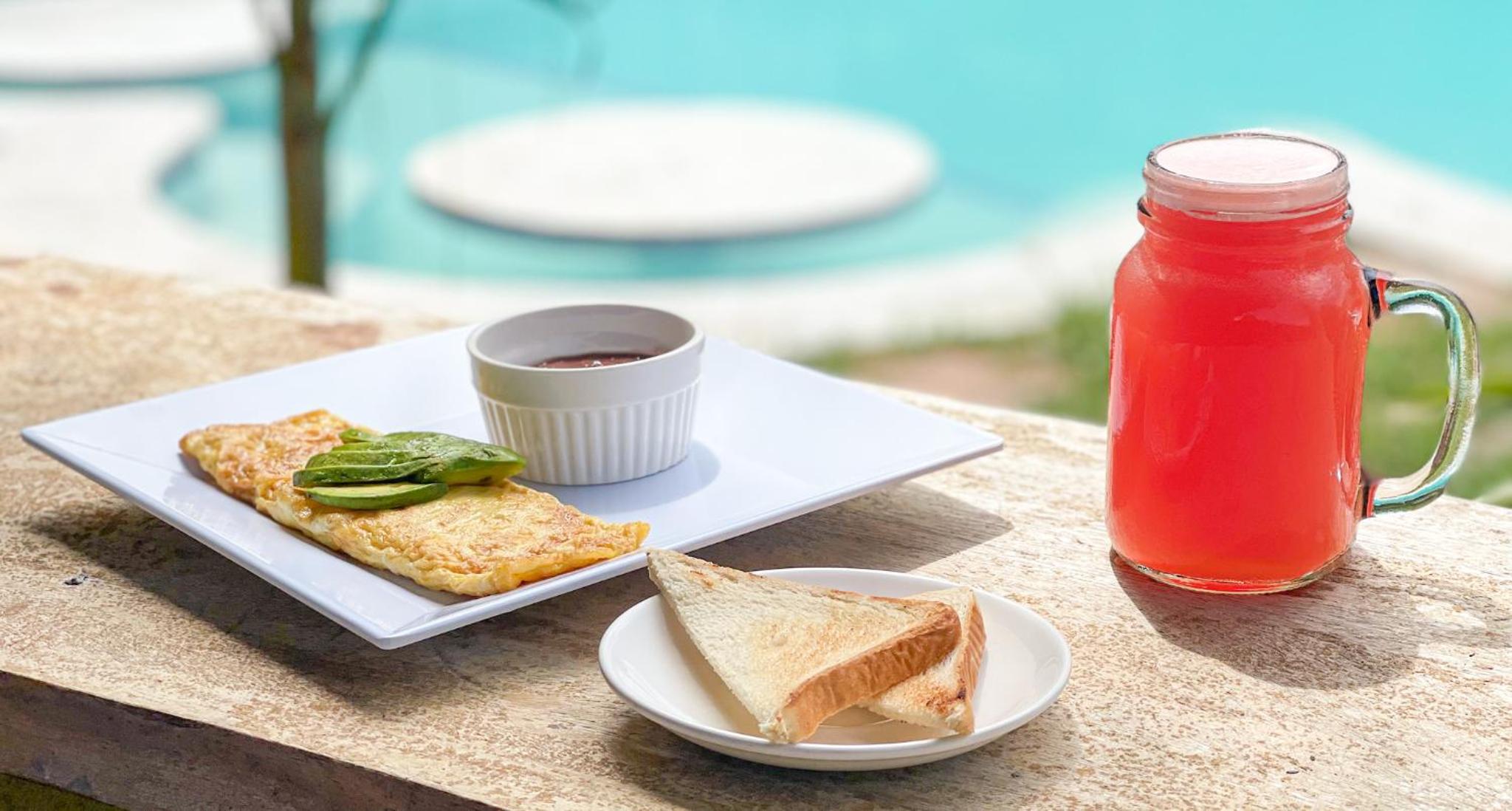 A Localização é o ponto alto dessa acomodação, tem td que precisa para fazer uma surf trip. Café da manha incluso e com boas opções, comida muito boa do restaurante para almoço e jantar.