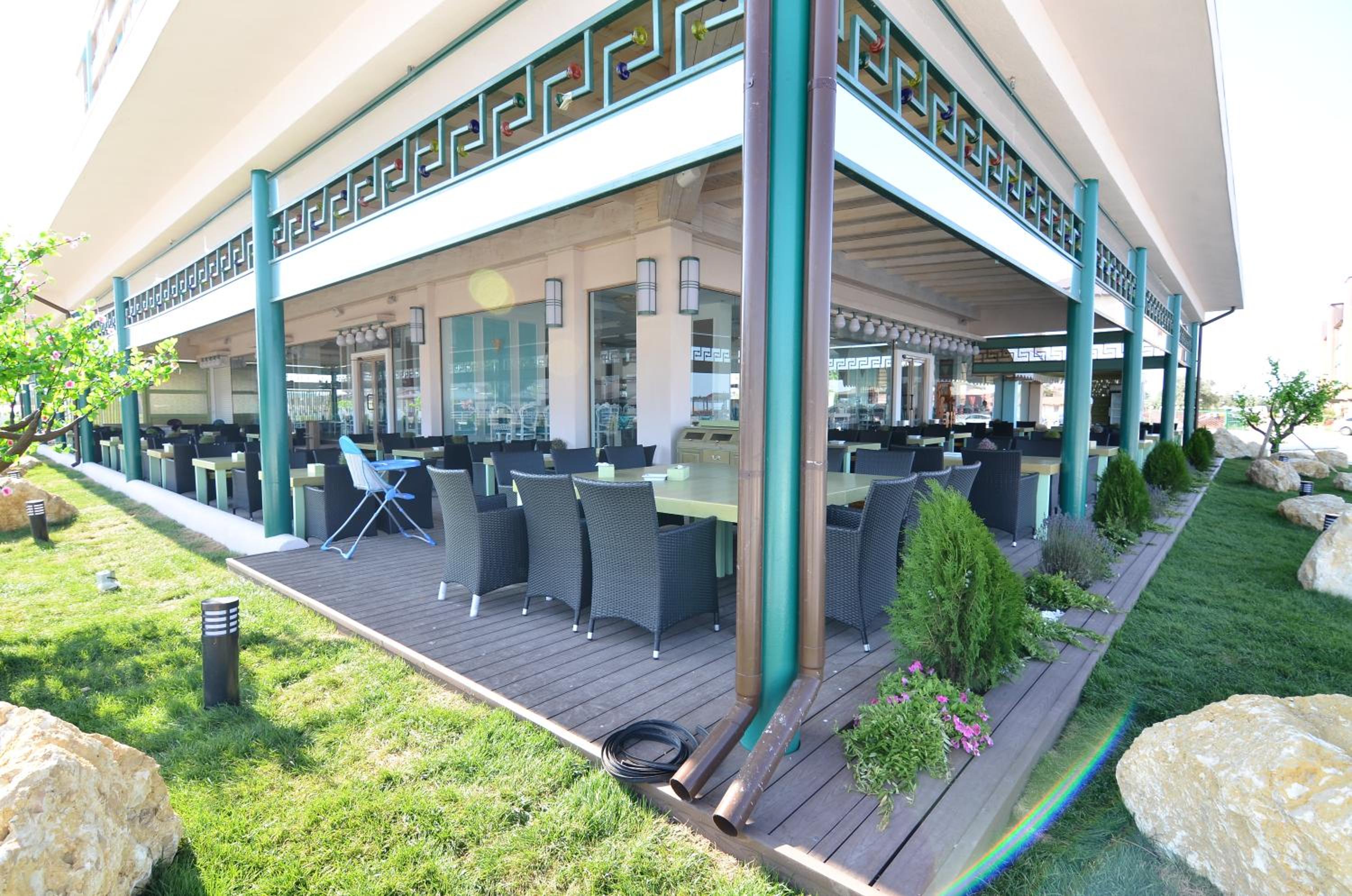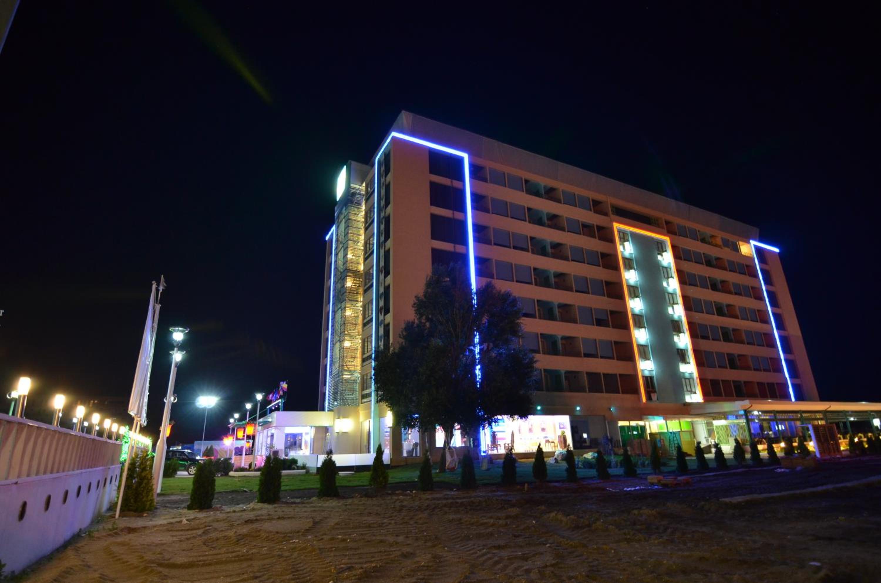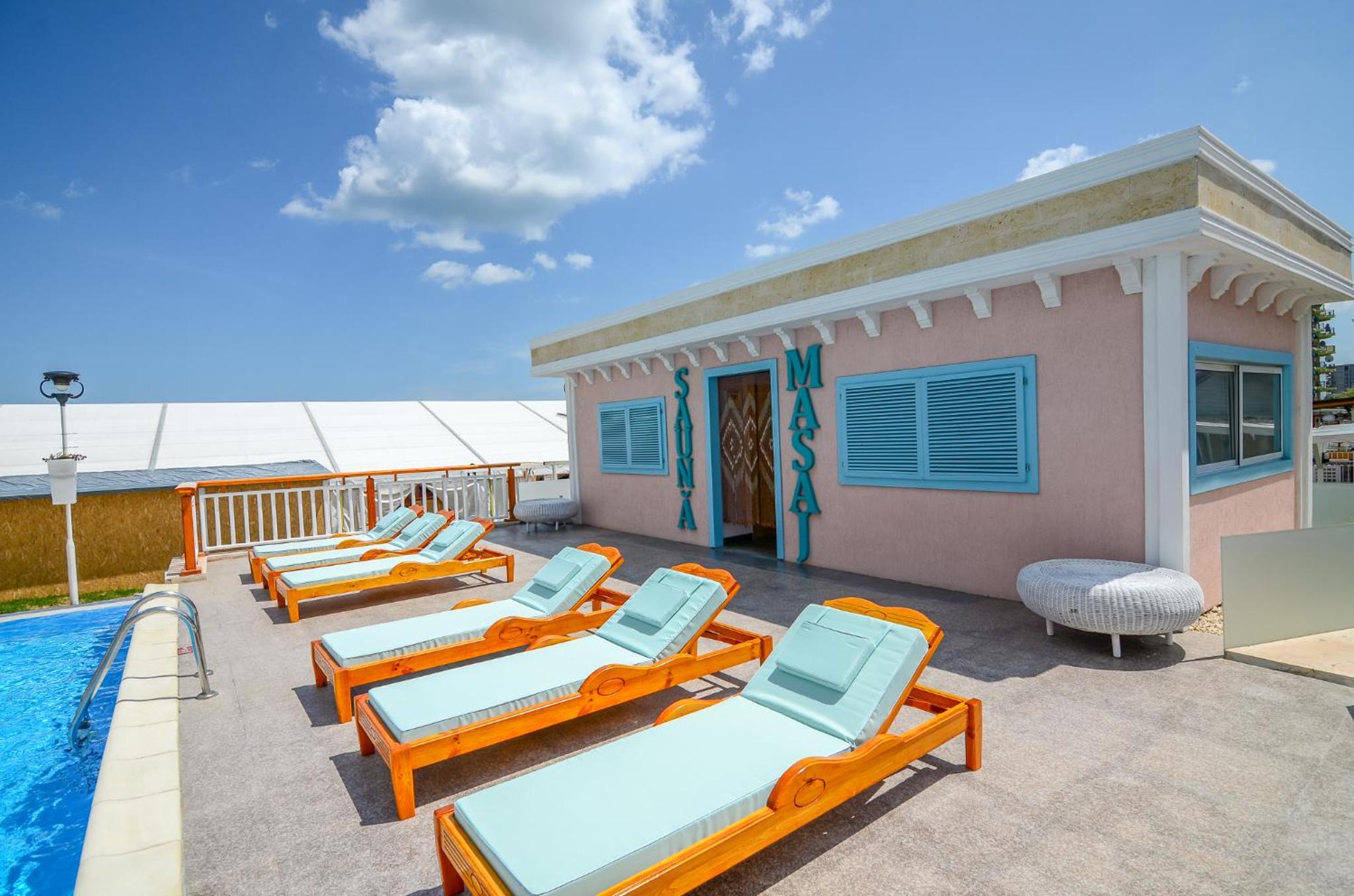 Fatada hotelului, restaurantului si promenada din jurul hotelului sunt ale unui hotel din anii '90, comunist, fara imbunatatiri. Trotuarele crapate, fara verdeata, piscina veche cu pernele murdare. Nu au prosoape pentru plaja si piscina, nu le aduc la timp, nu le curata. Eu nu am fost in sezon, ci la final de sezon. Stau si ma intreb in sezon ce se intampla, ma gandesc cu groaza. Festivitatile si spectacolele seara se desfasoara intr-un cort insalubru, de prost gust si murdar fara sa ai aer curat, doar esti la mare.
