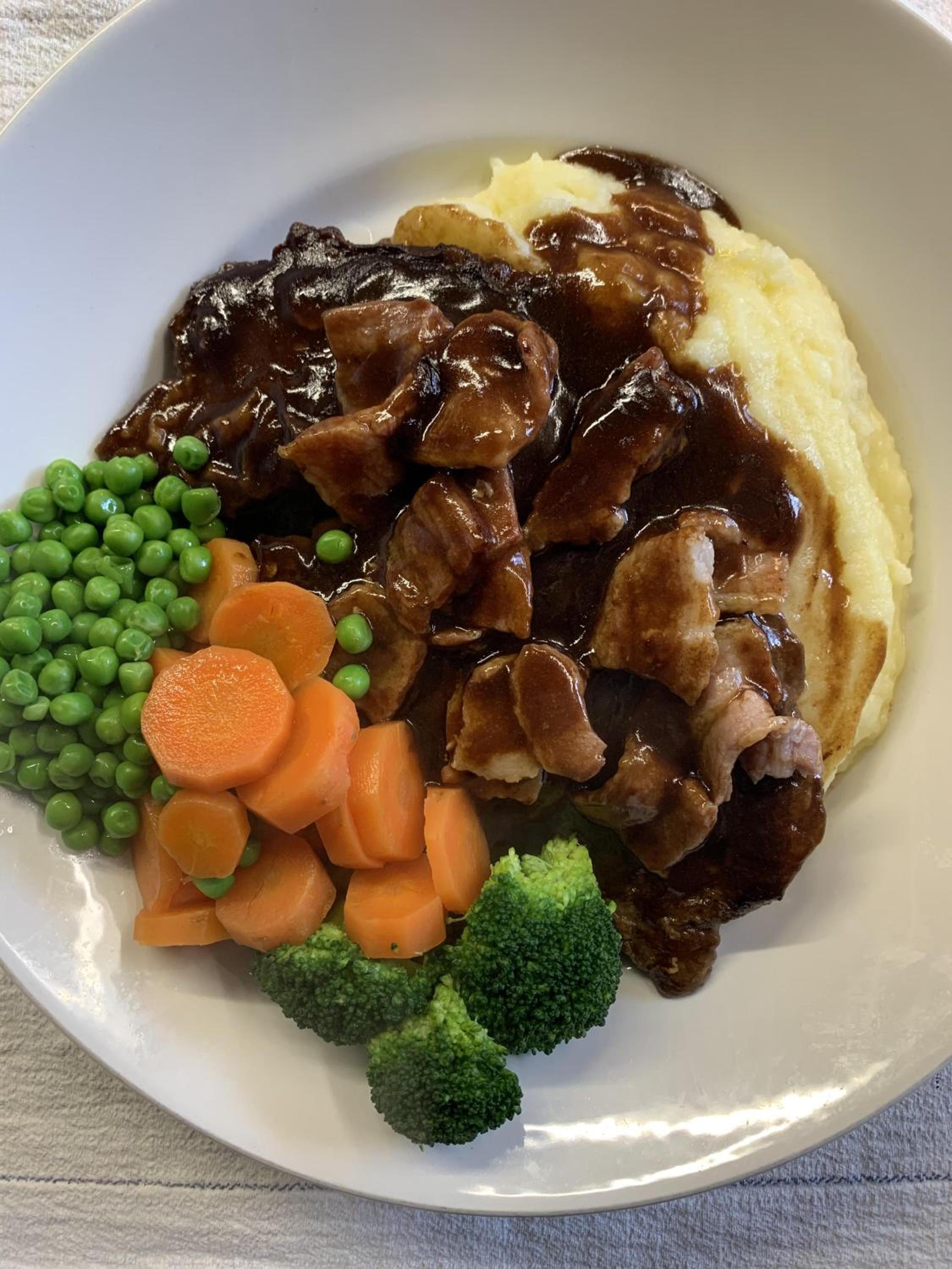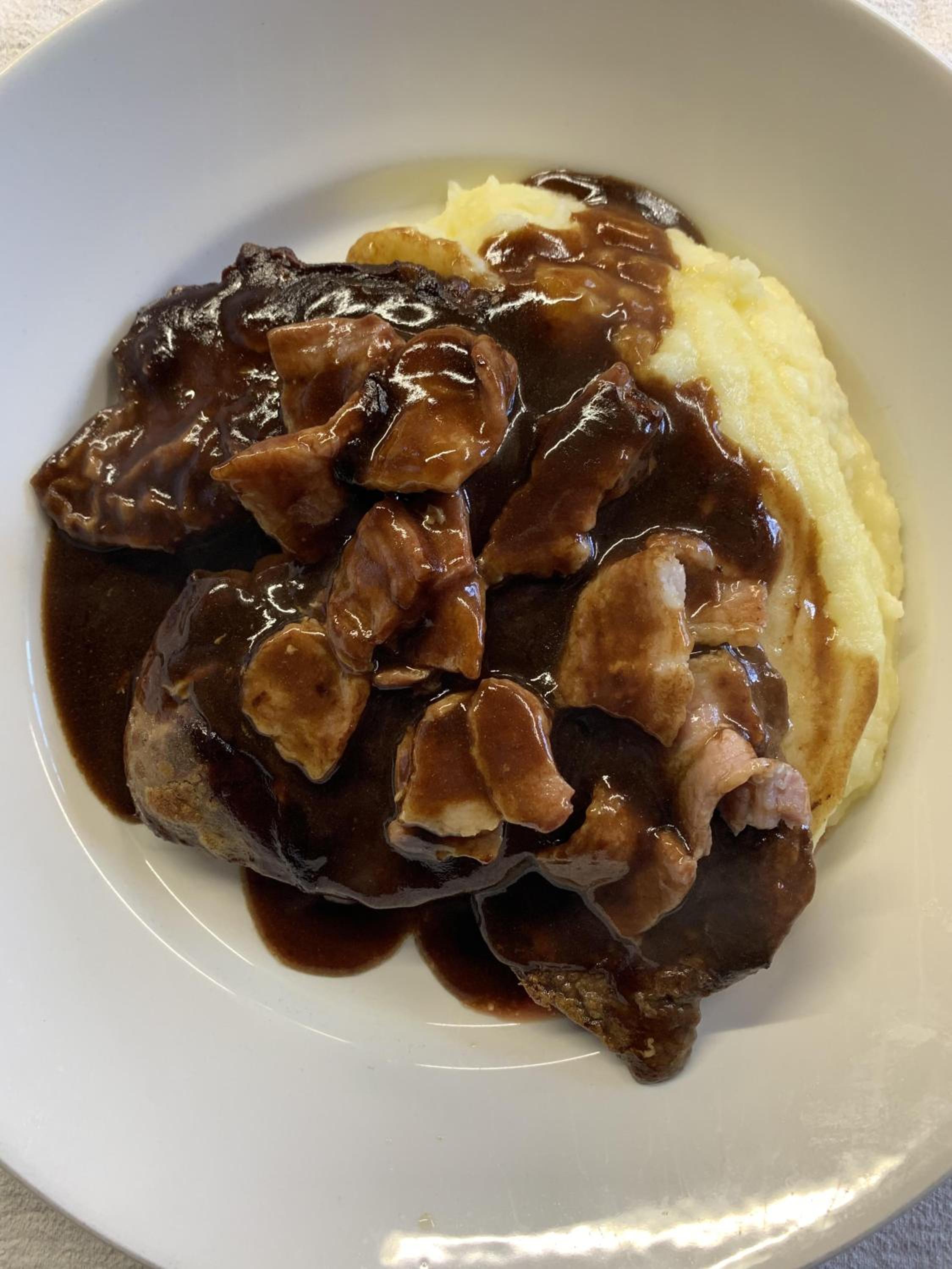 It was cooked liked lambs liver with thick gloopy gravy. Good food spoiled