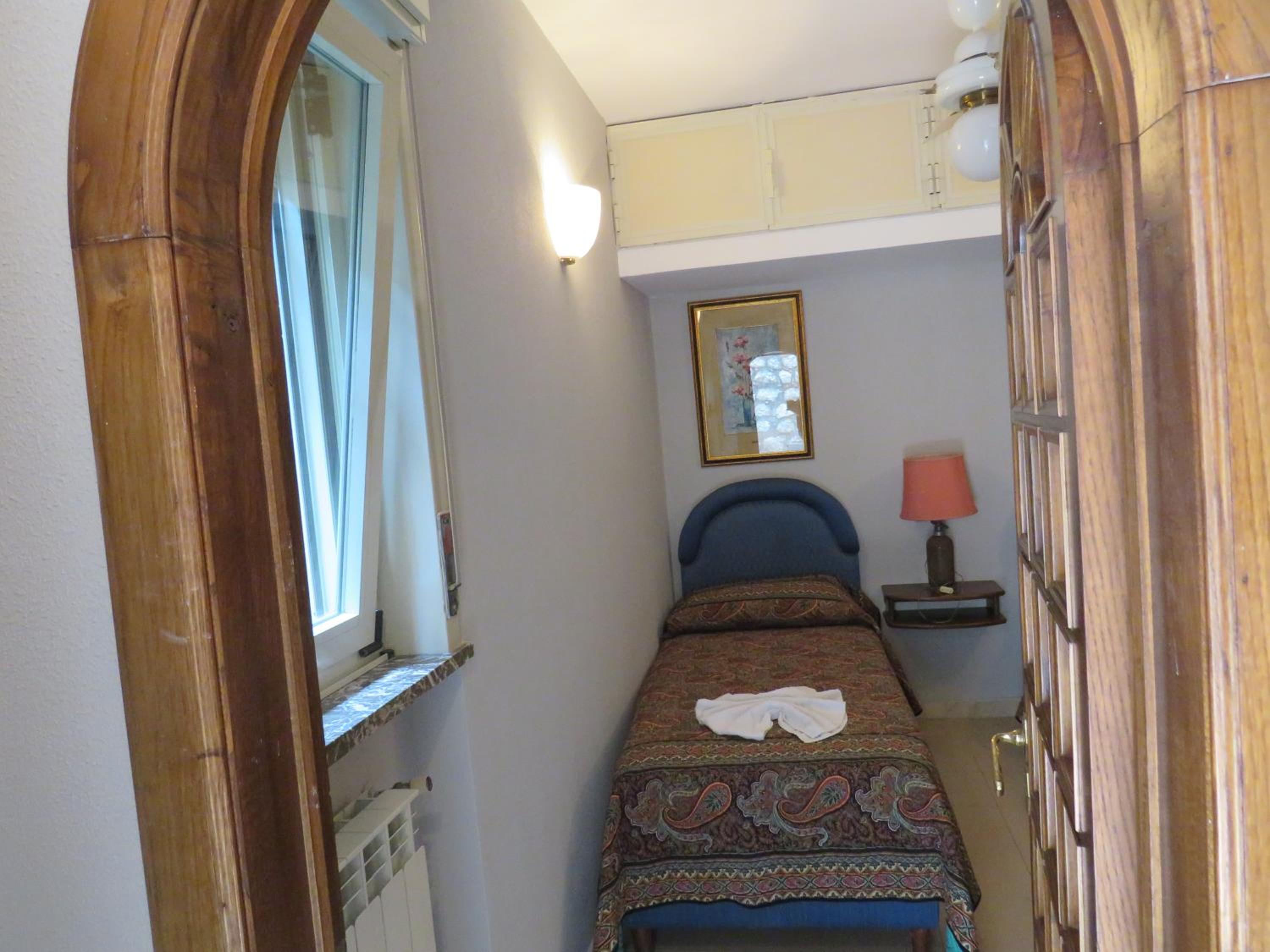 Dimensione della camera molto piccola, finestra quasi inesistenti essendo sotto al piano terra classico e bagno molto molto piccolo