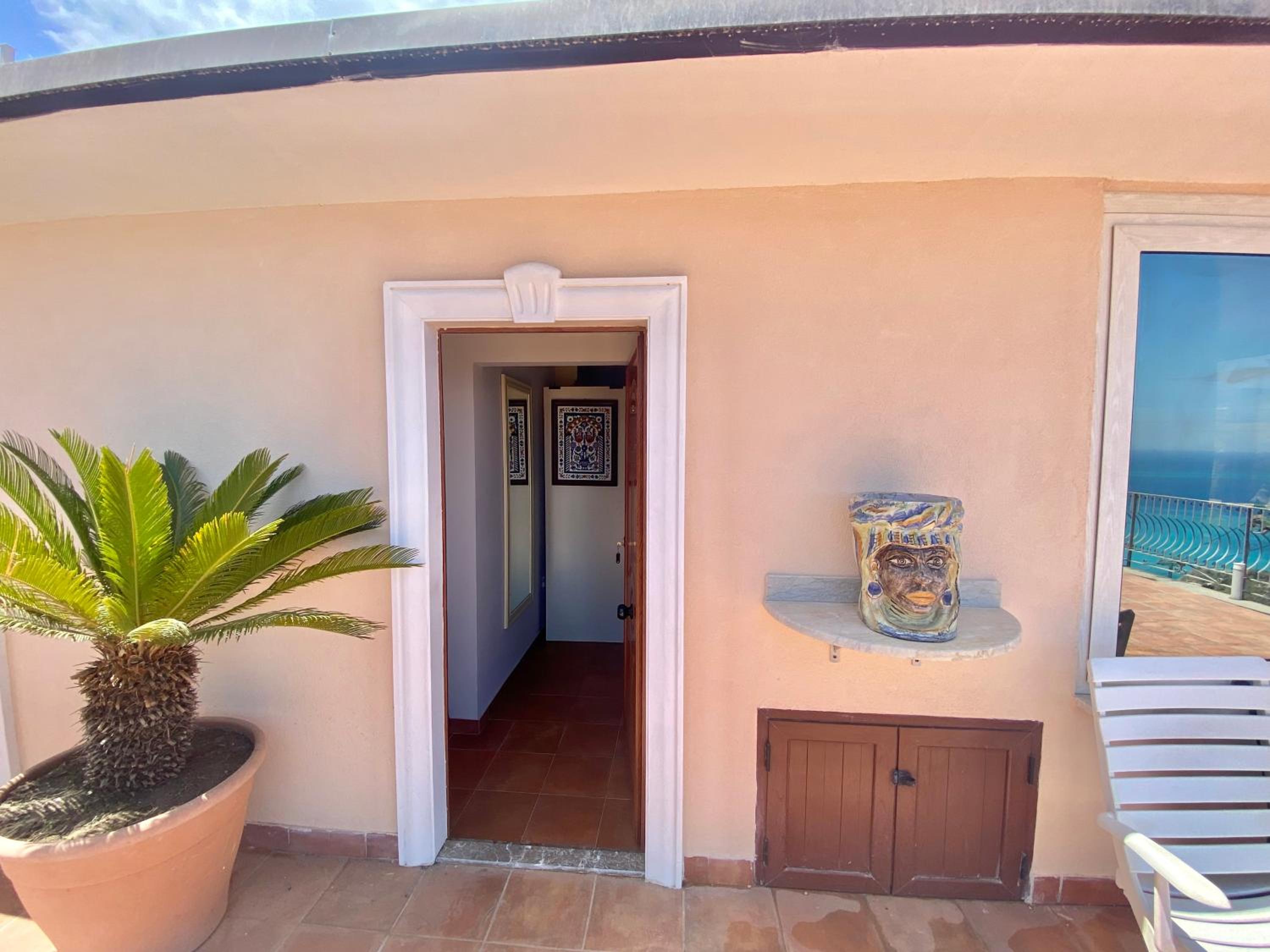 Closeness to the old city of Taormina, shops, restaurant and cable car. The views of the Ionian sea and Calabria were magnificent. The large balcony outside our room was a great meeting point for us.