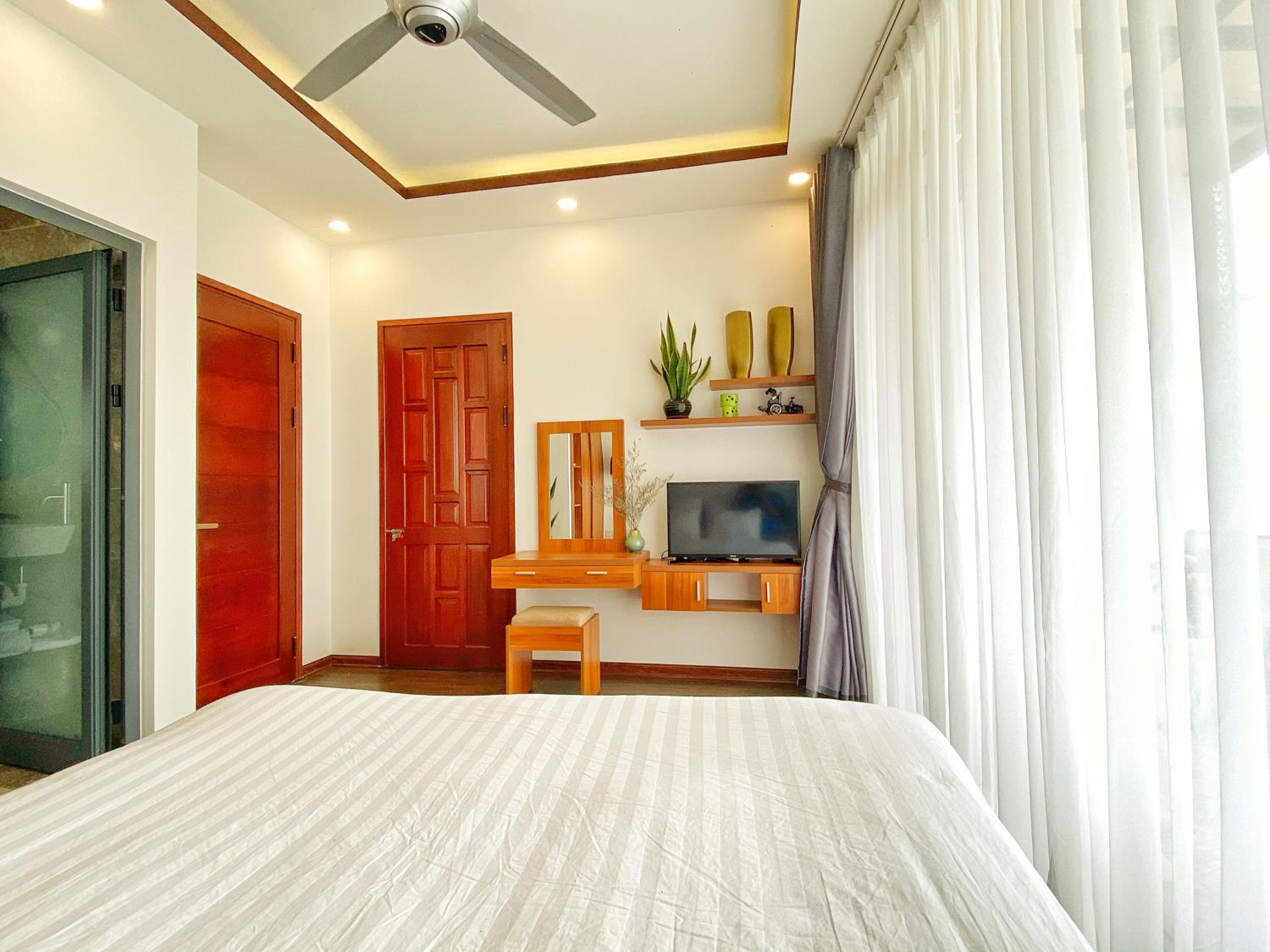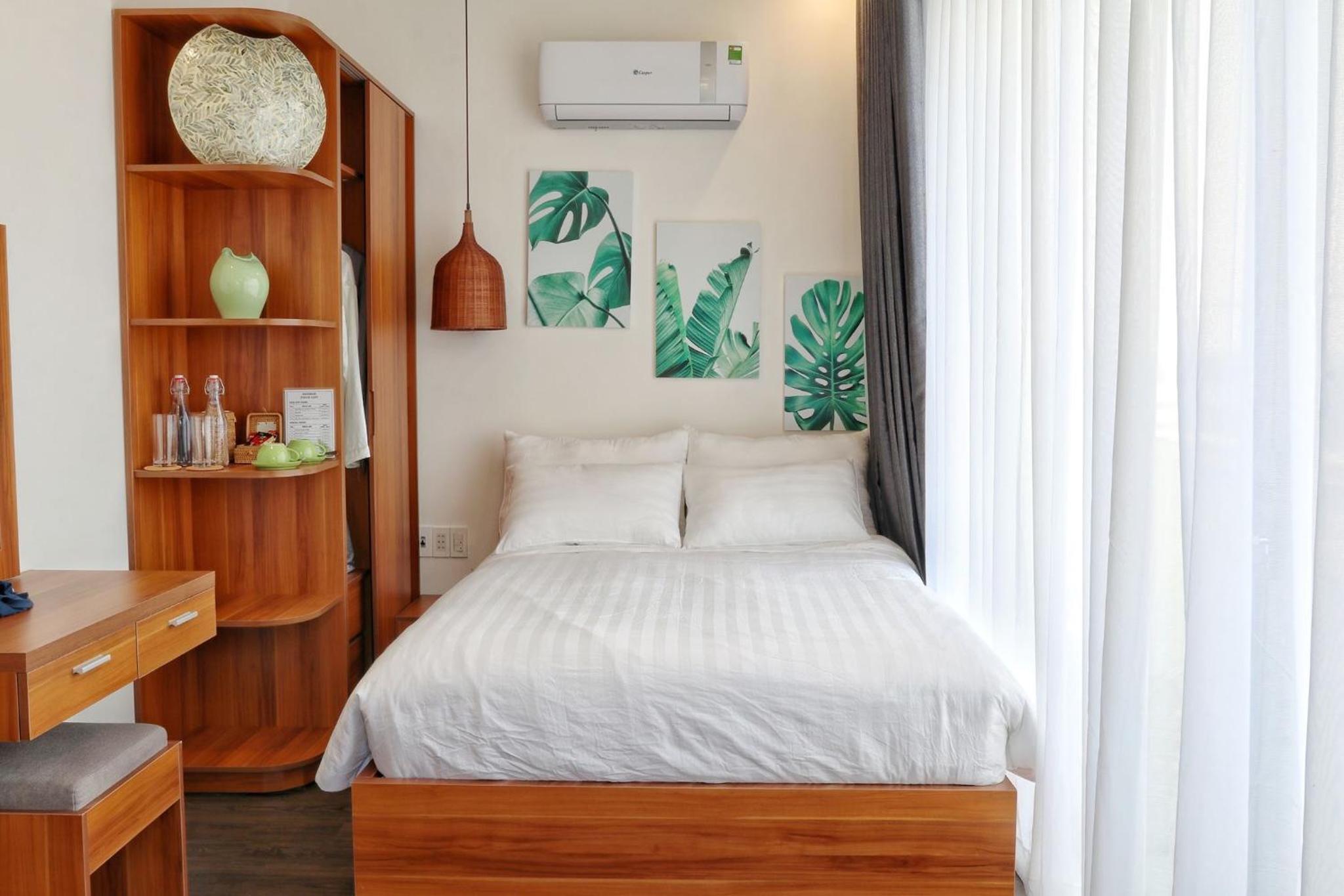 This boutique hotel was 5 star! Every detail was designed to be both useful and aesthetically pleasing. My room overlooked the stunning pool which beckons one to swim or sunbathe in complete comfort. Phuc is a fabulous host. She gracefully ensures that everything is perfect for her guests. The homestay is within walking distance to some wonderful restaurants and a community garden. Free bikes are provide to make the short trip to the beach or town.