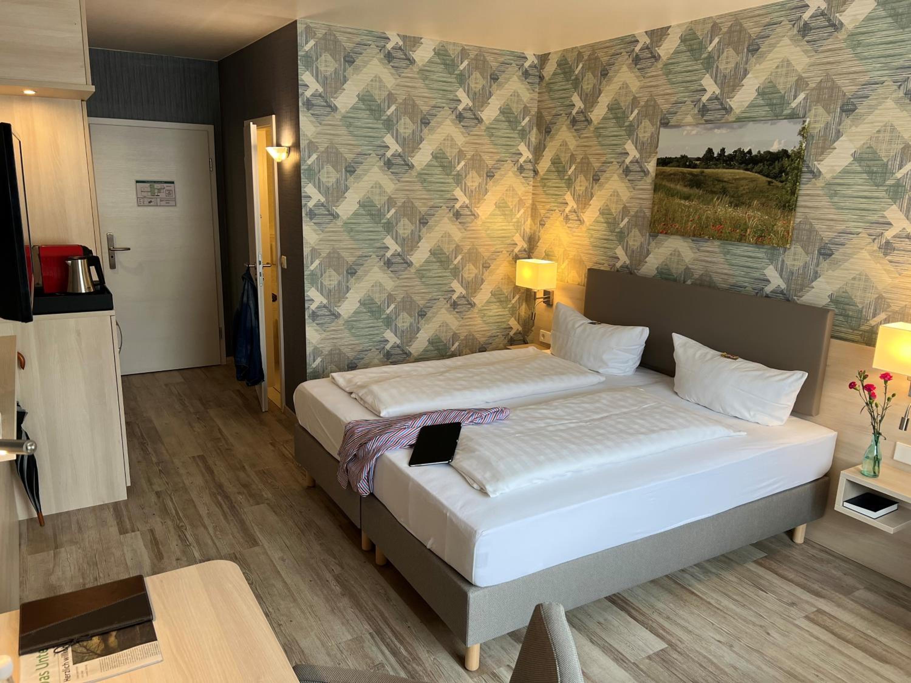 Sehr bequemes Bett, Zimmer genau richtig, sehr gutes Frühstück, sehr freundliches Personal.