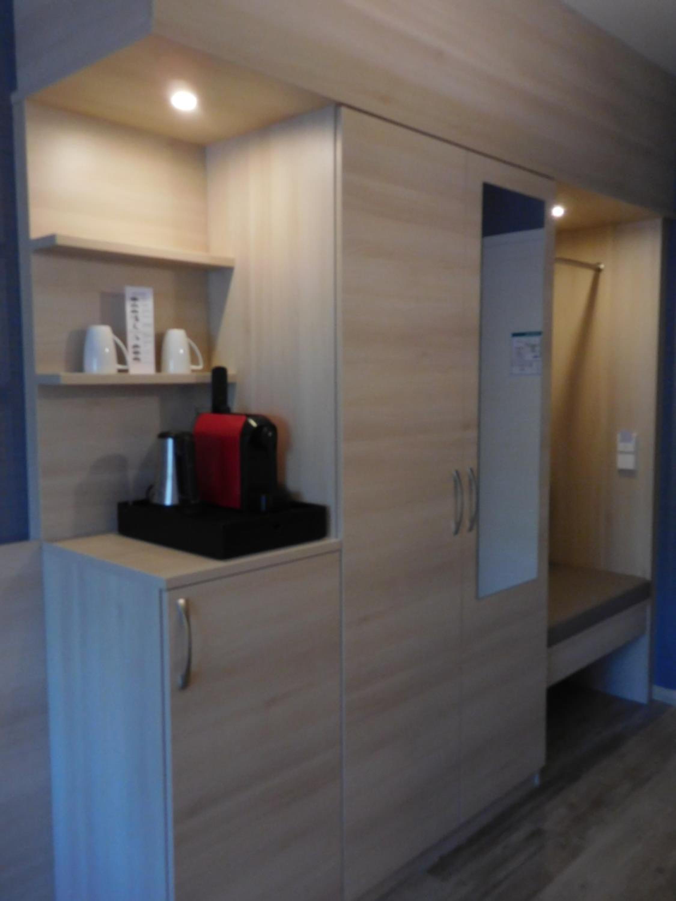 Spotlessly clean , well appointed room with rather nice design touches - which was apparent throughout the Hotel. Friendly owner and staff and good food. Thoroughly recommended .