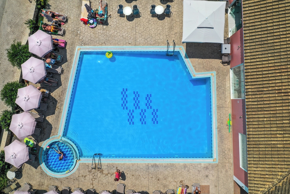 Enjoy the outdoor pool and terrace with stunning views at Dinos Hotel. Relax and soak up the sun in a tranquil setting.