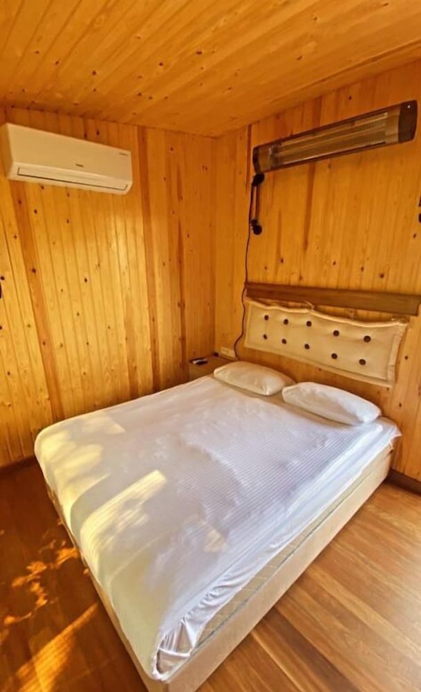 Yandaki düğünden dolayı konakladık. Bebekle gittik. Saat akşamüstü 7 gibi girdik ama henüz hazır değildi oda. Sanırım sünnet düğünü olduğu için bizi unutmuşlar gibi düşündük. Park yatağı önceden ayırtmıştık, ayarladılar. İç döşeği ve çarşafı berbattı. Neyse ki ben çarşaf ve yastık getirmiştim. Sıcak olduğu ve cam olmadığı için klimayla uyuduk. Çok çok dar bir oda ama konteyner olduğu için normal. Kullandığımız yorgan kılıfsız bırakılmış dolaba ve sigara kokuyordu. Klimadan soğuk olunca mecbur kullandık. Kimse çalışmıyor gibi duruyordu sabah çıkış yaptığımızda. Kahvaltı etmeden çıktık.