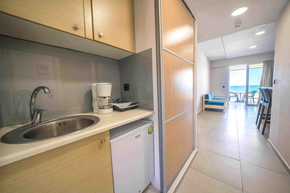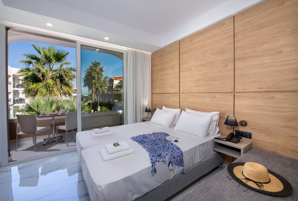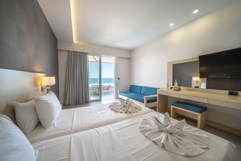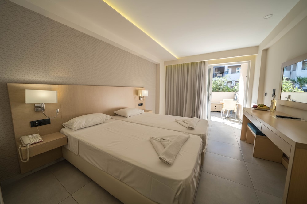 What a beautiful hotel. I give the a Marika Hotel 5 stars. Cannot fault it at all. We had a room with a view of the pool, but could also see the sea. A great size balcony. The decor was modern and excellent quality and beds comfortable. The staff were very friendly and helpful, the hotel was immaculately clean, the cleaners were so friendly too.