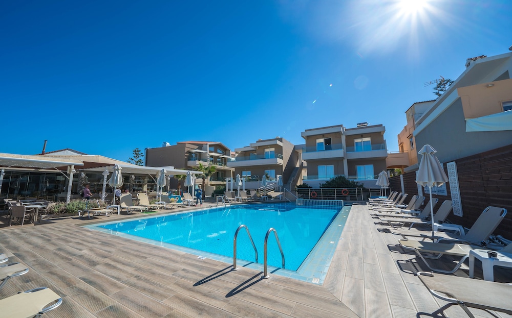 Enjoy a seasonal outdoor pool, terrace, and garden at Marika Hotel for a relaxing stay.