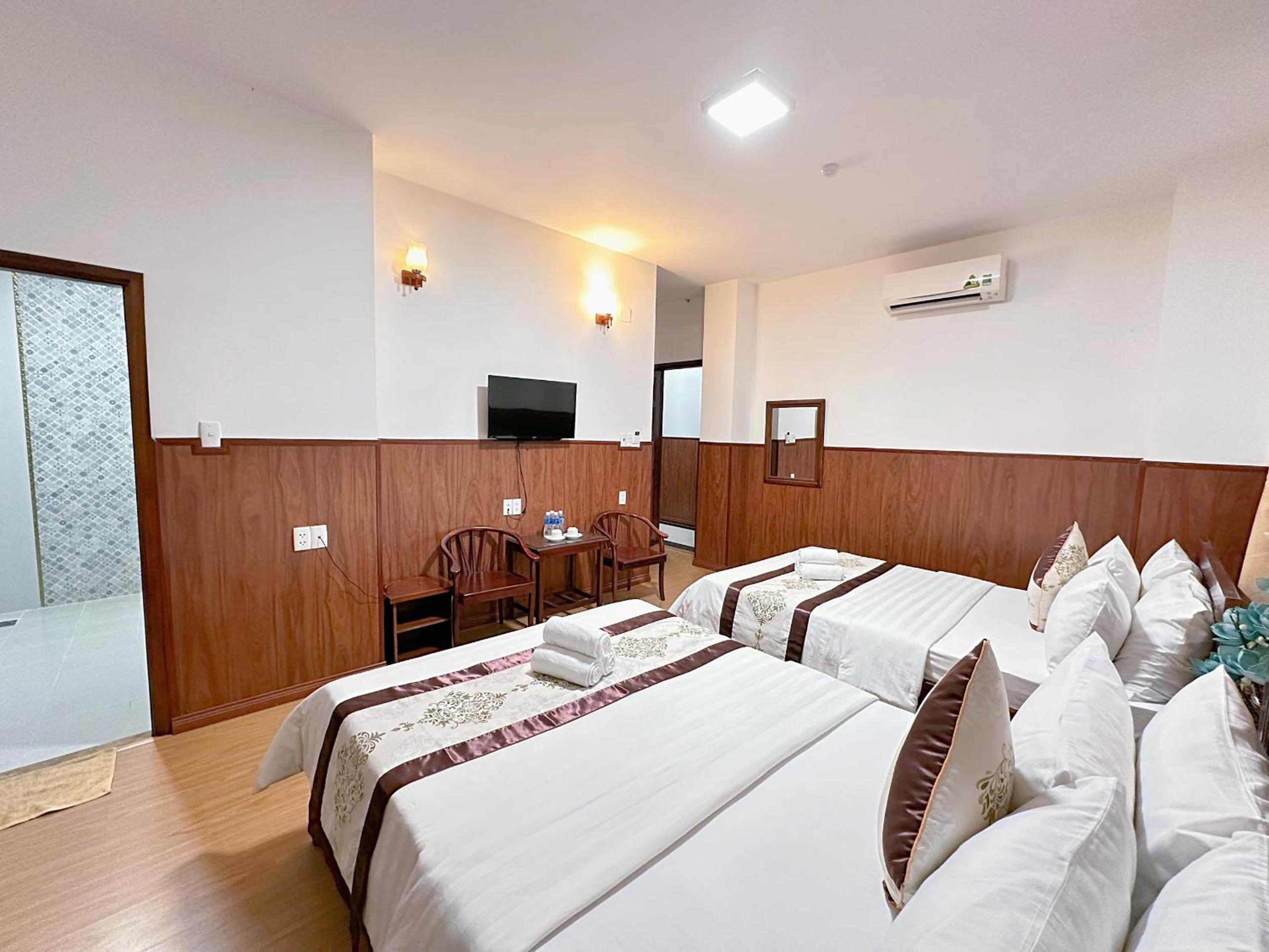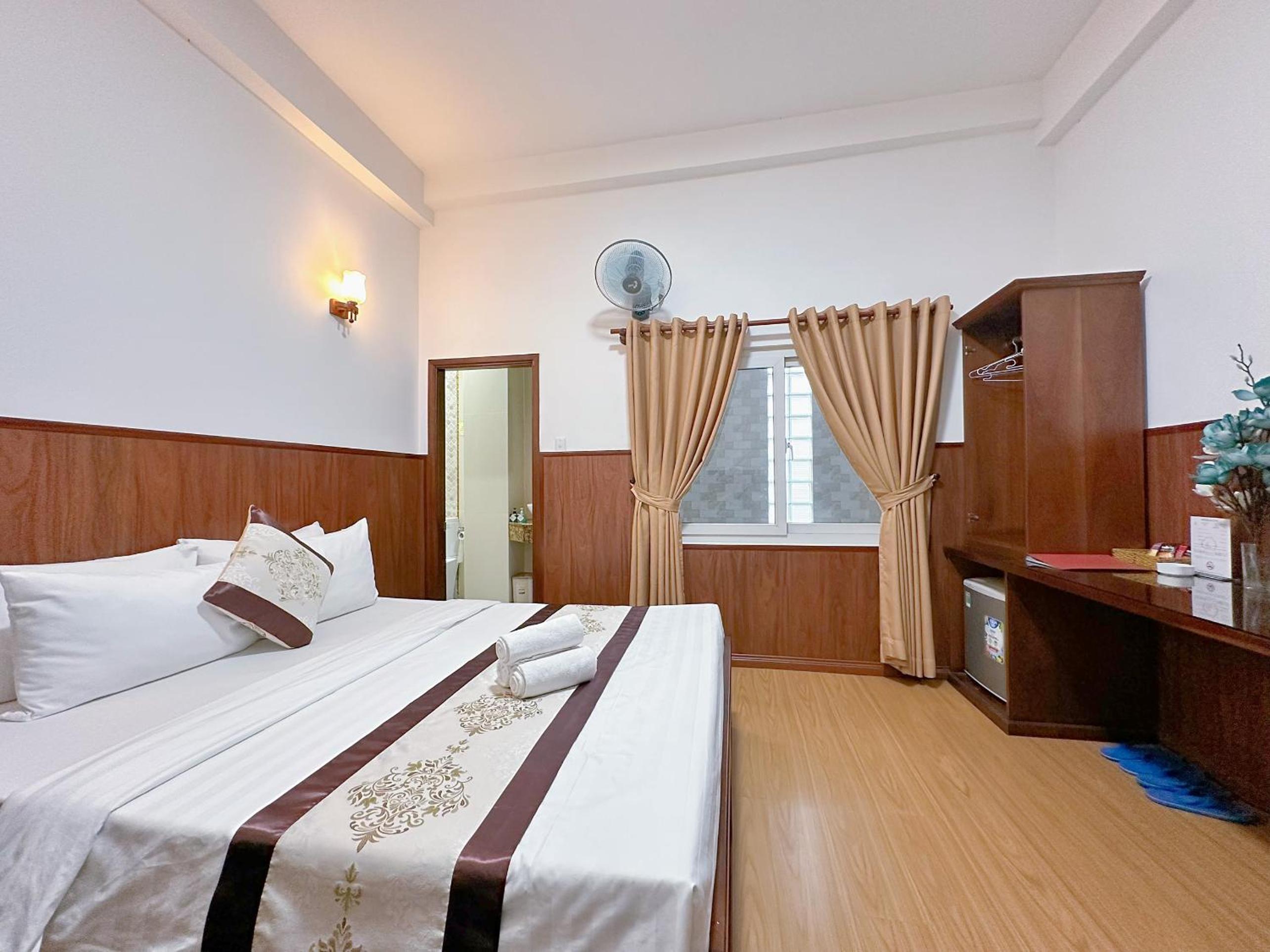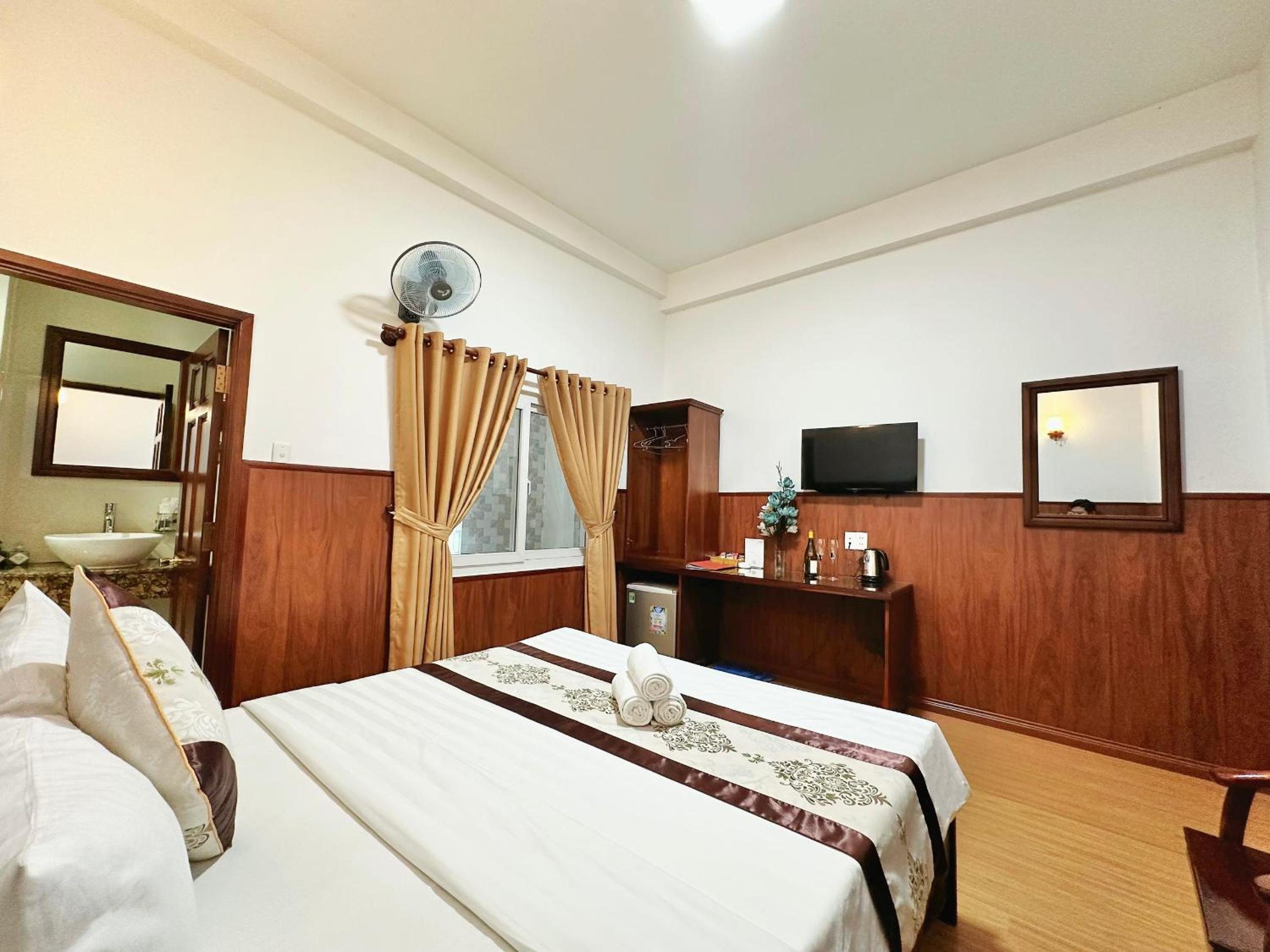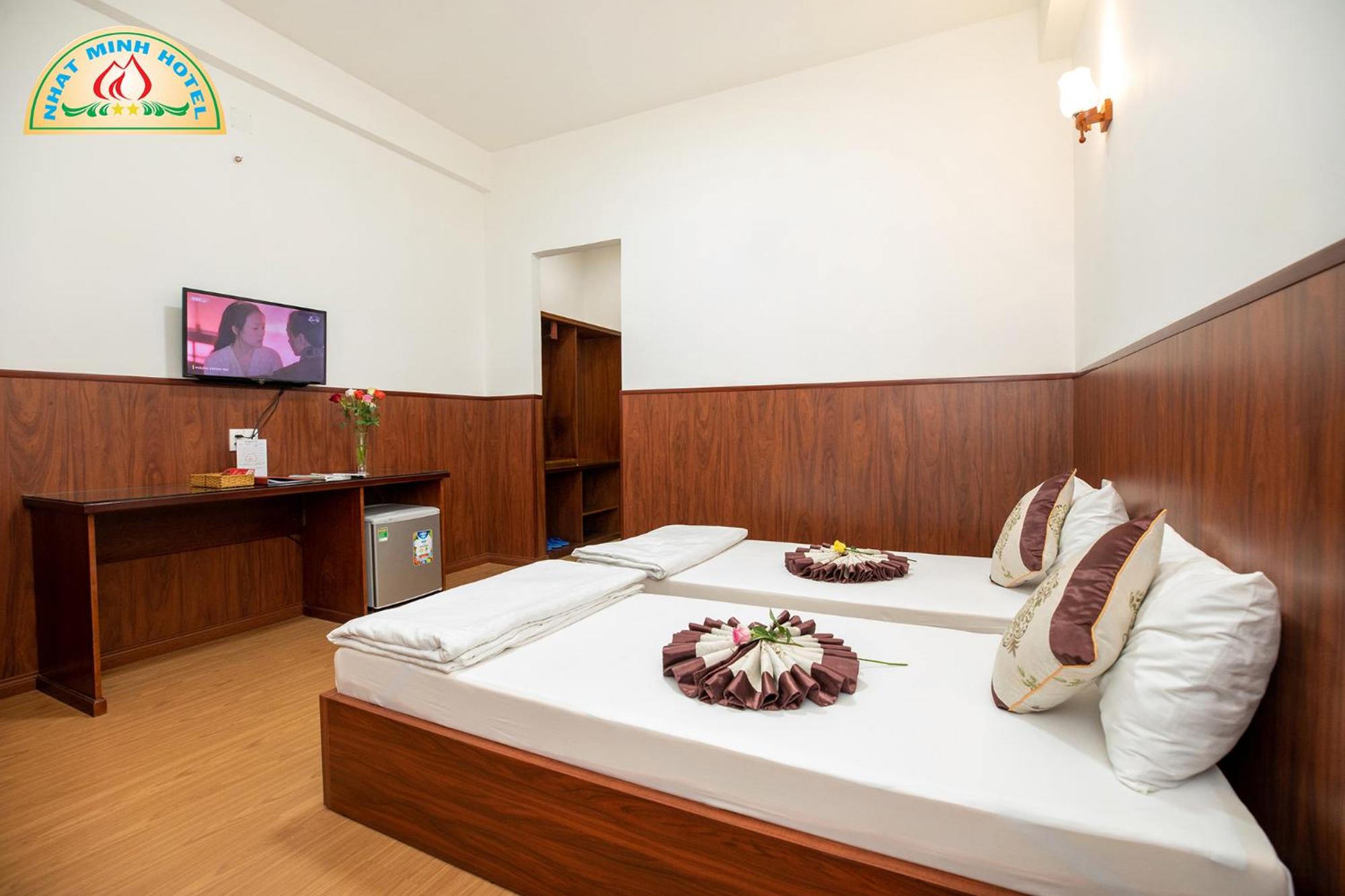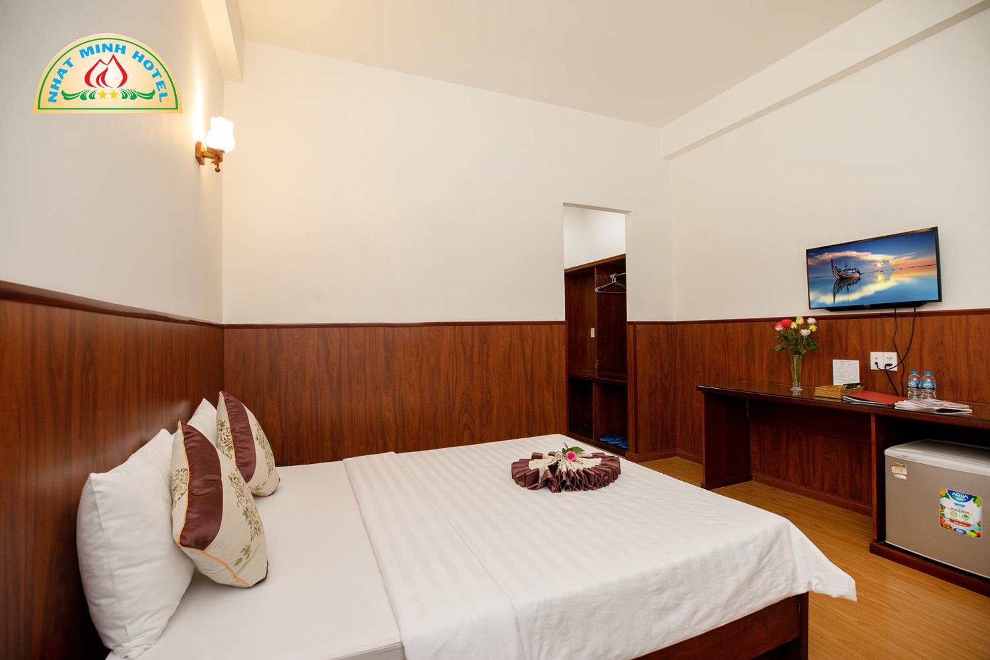 The air-conditioned rooms at Nhat Minh Hotel feature essential amenities such as a desk, kettle, minibar, flat-screen TV, and a private bathroom with a bidet. Bed linen and towels are provided for a cozy stay.