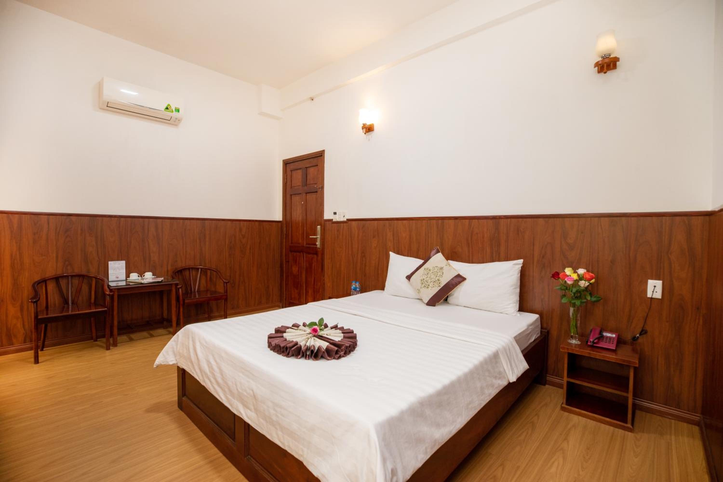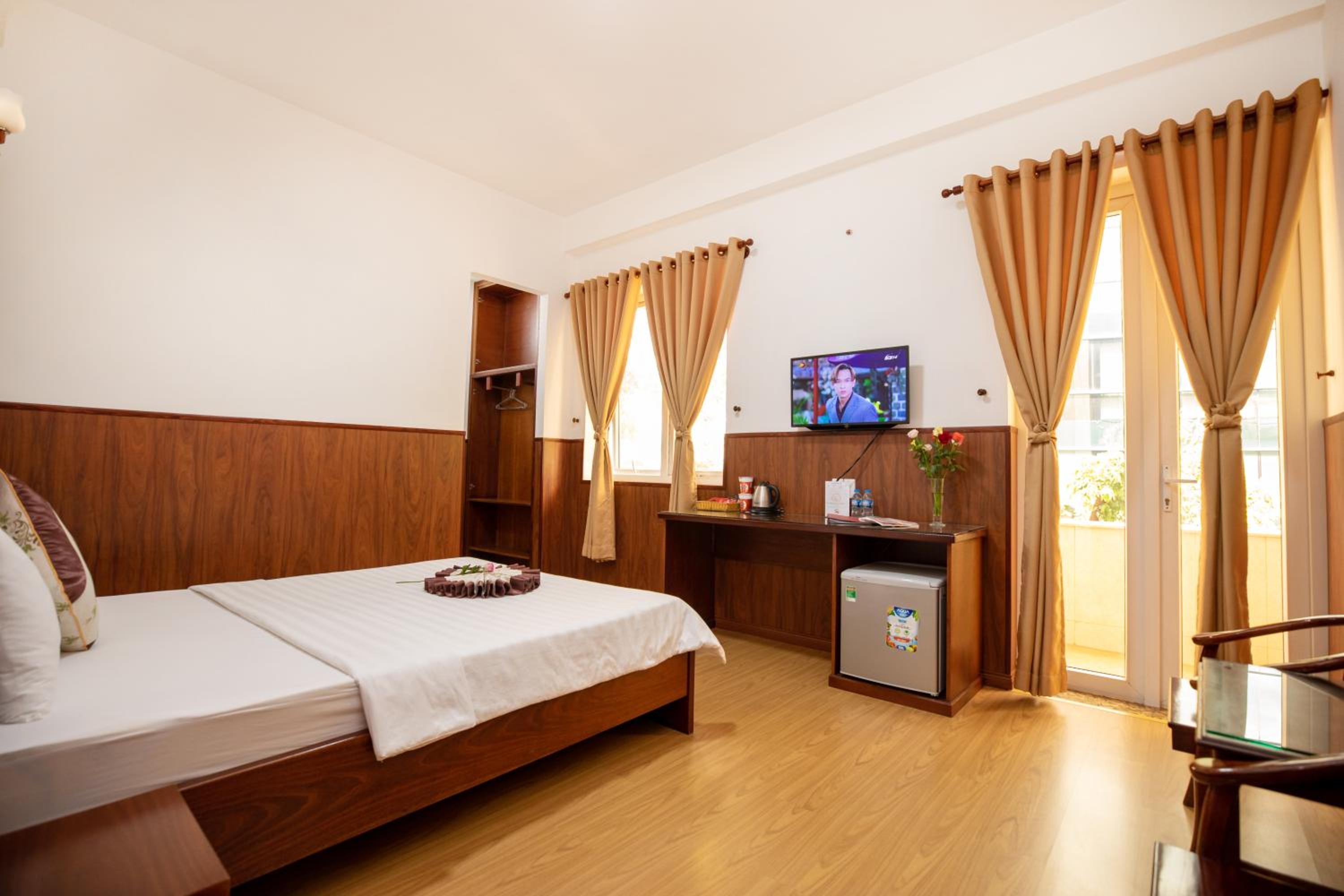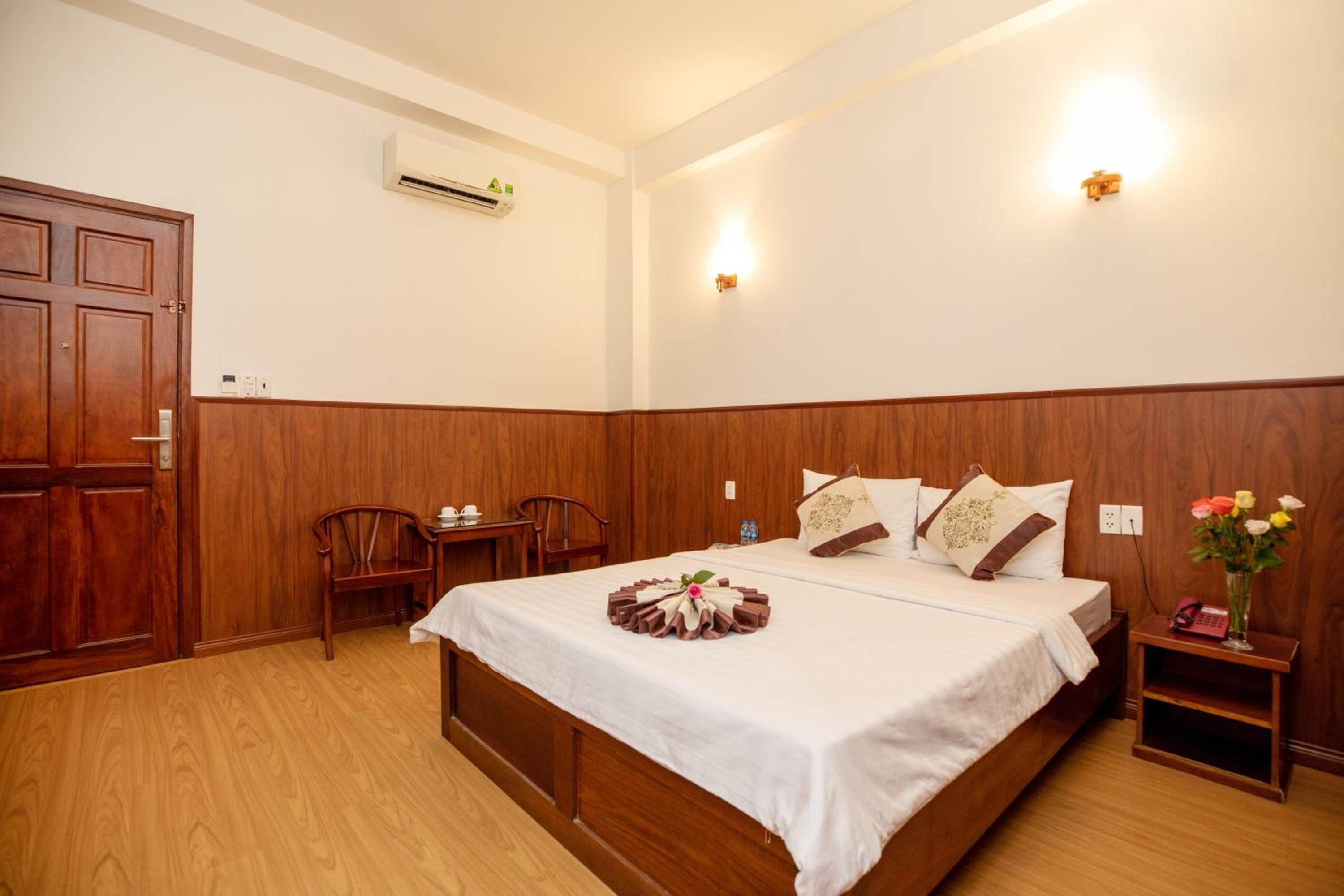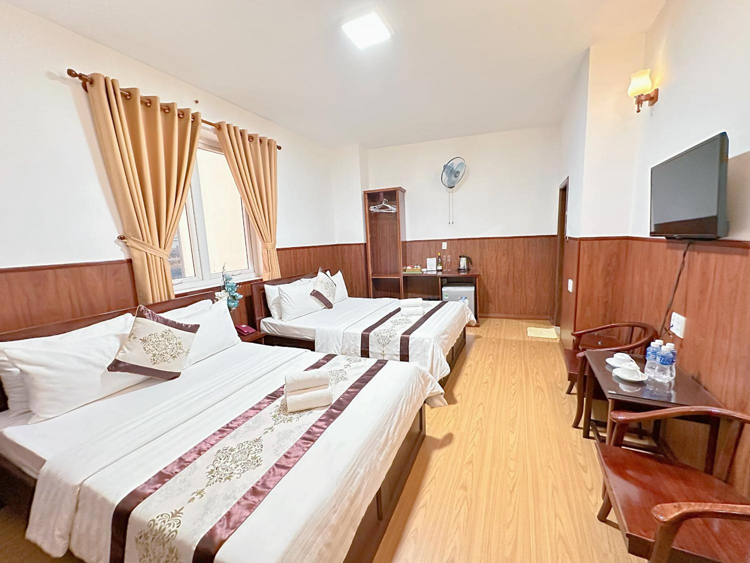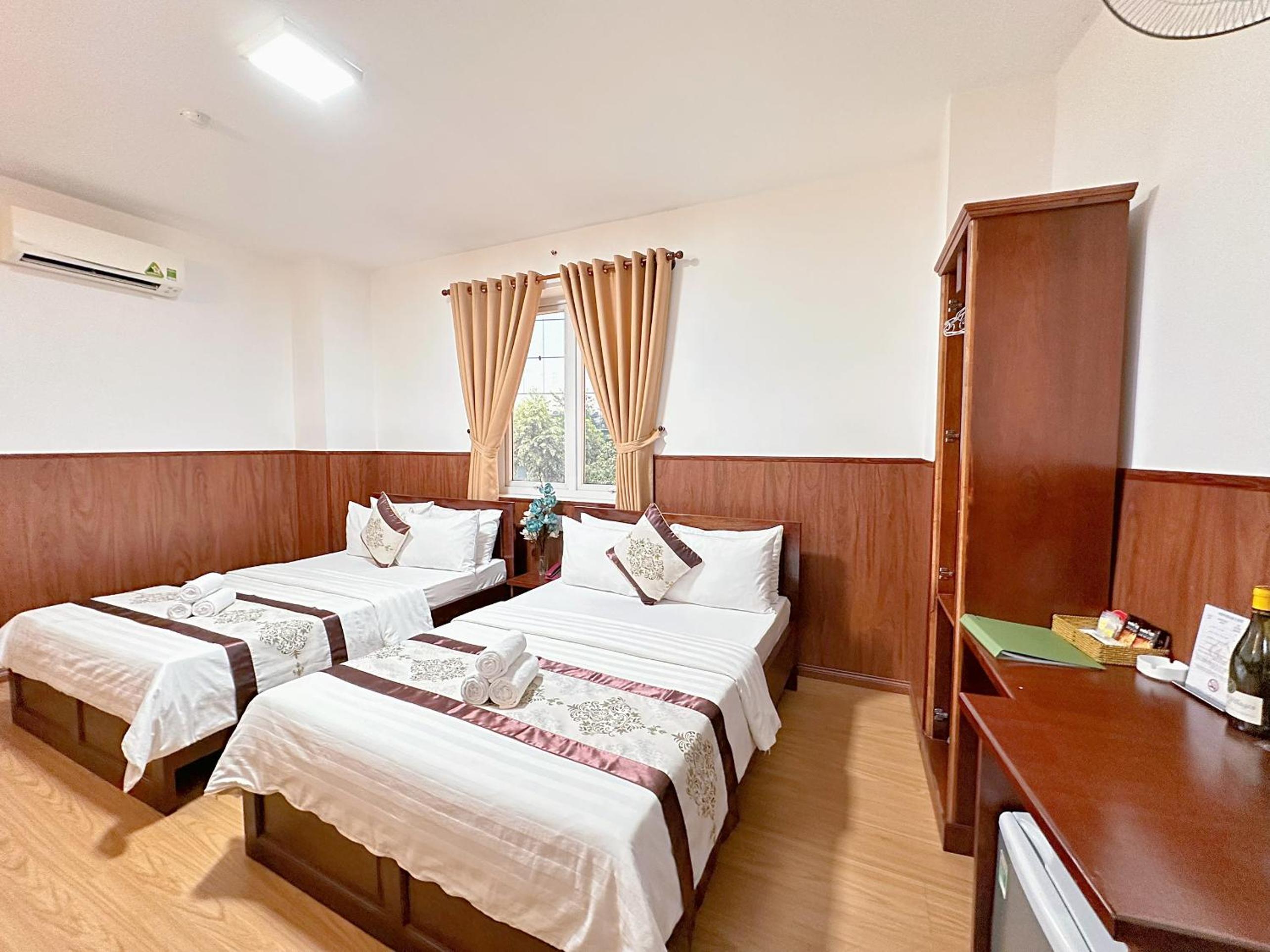 The air-conditioned rooms at Nhat Minh Hotel feature essential amenities such as a desk, kettle, minibar, flat-screen TV, and a private bathroom with a bidet. Bed linen and towels are provided for a cozy stay.