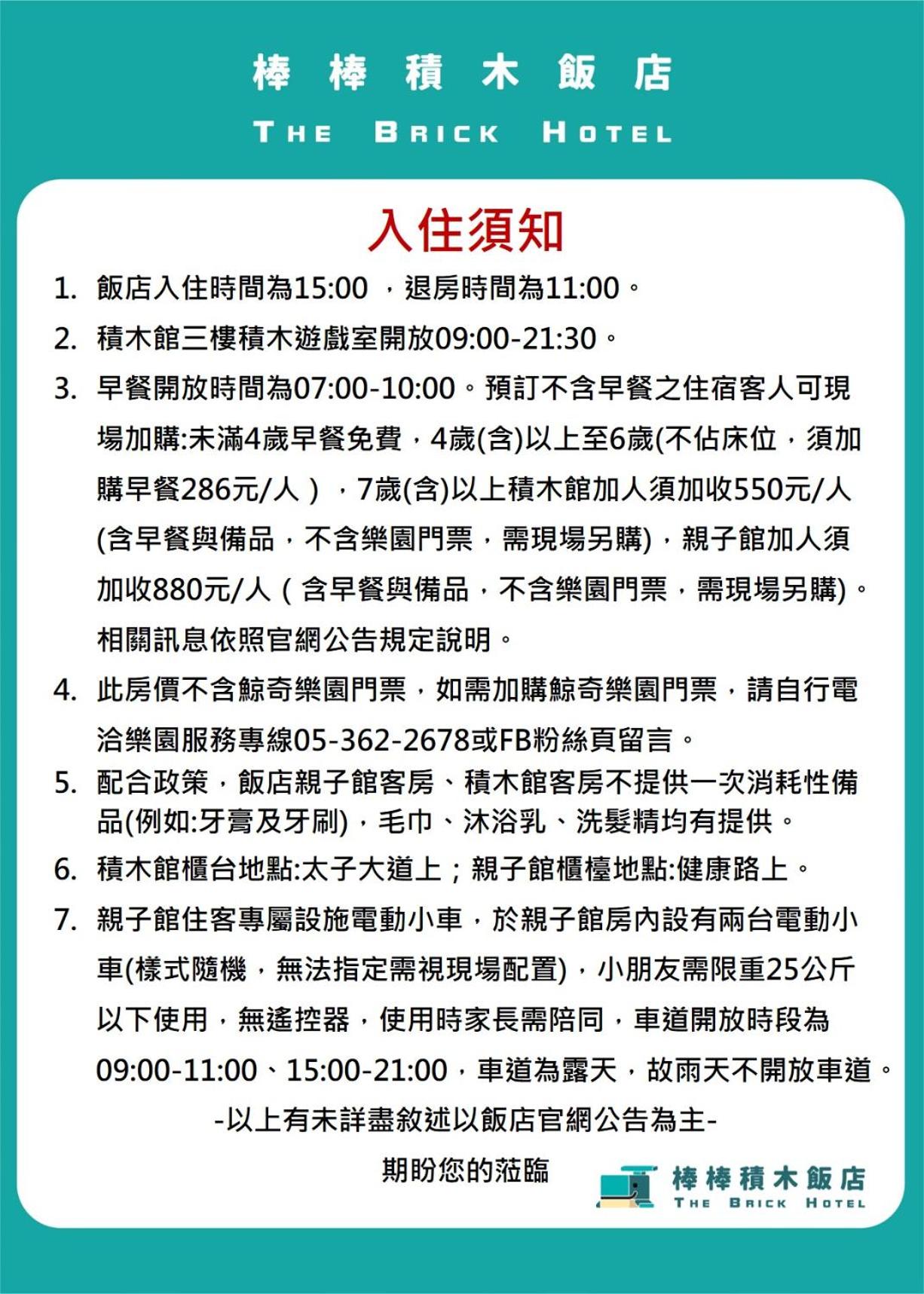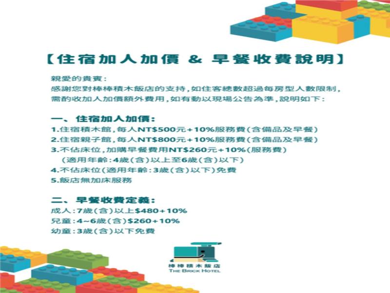 *Additional charge NT$:550 (including breakfast and toiletries) for children over 7 years old