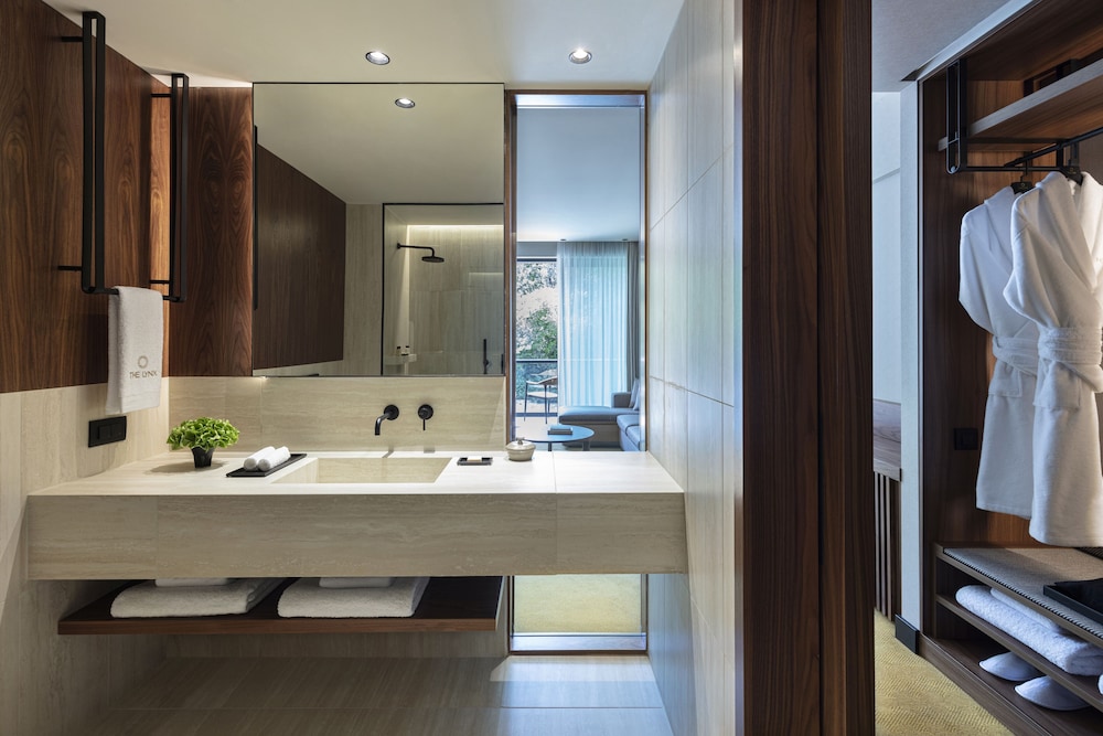 The room we booked for our family of three was spacious and elegant, with great comfortable beds and a homey sitting area, featuring an equally spacious terrace, with panoramic views of the city. Attention was given to every detail, from the lighting to each piece of furniture, to ensure the modern earthy design consistency, while the bathroom was enormous, featuring a double basin and a stunning walk-in shower.