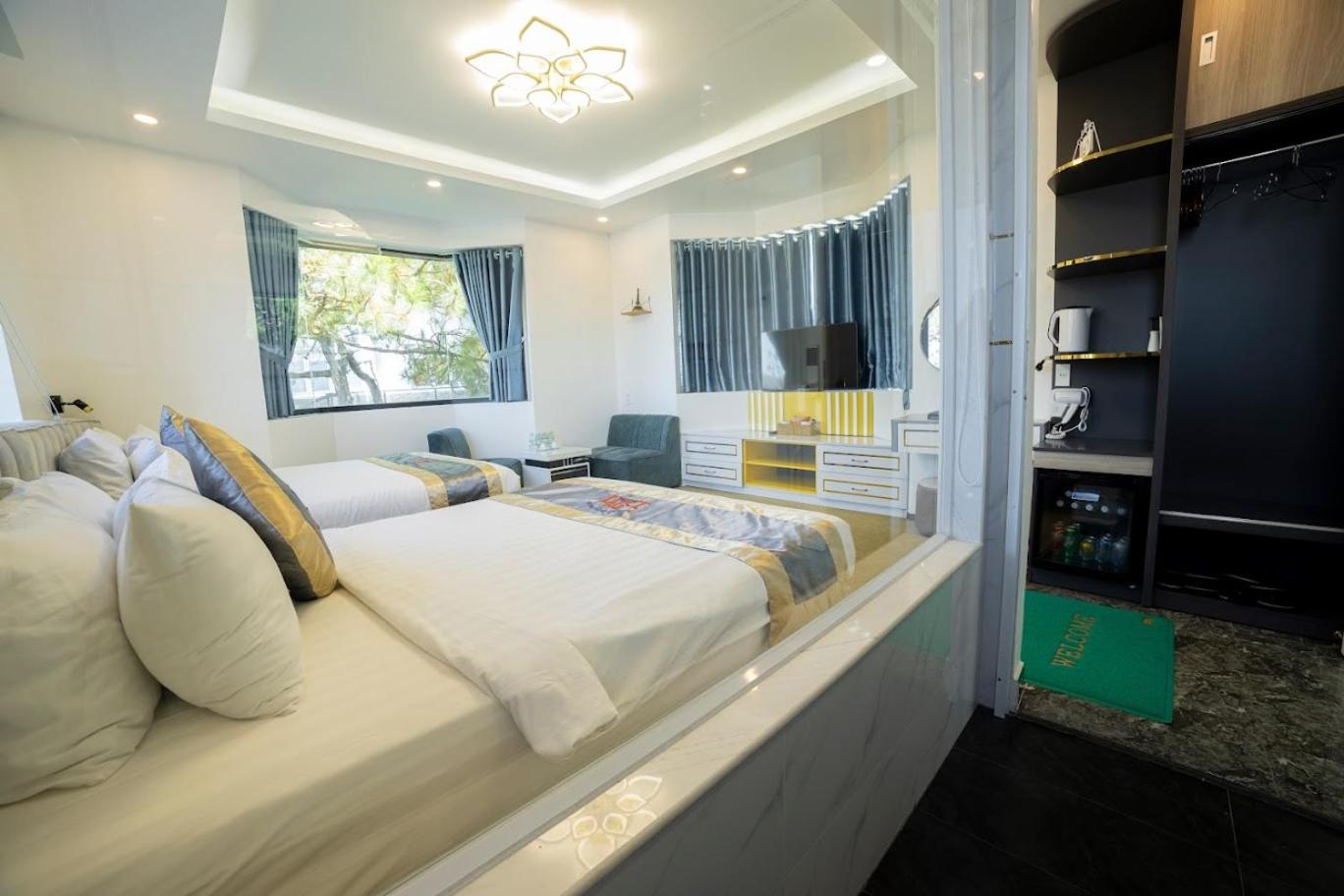 Guests can enjoy 24-hour front desk assistance, airport transfers, and room service. Stay connected with free WiFi throughout the property and explore nearby attractions like Xuan Huong Lake and Yersin Park Da Lat.