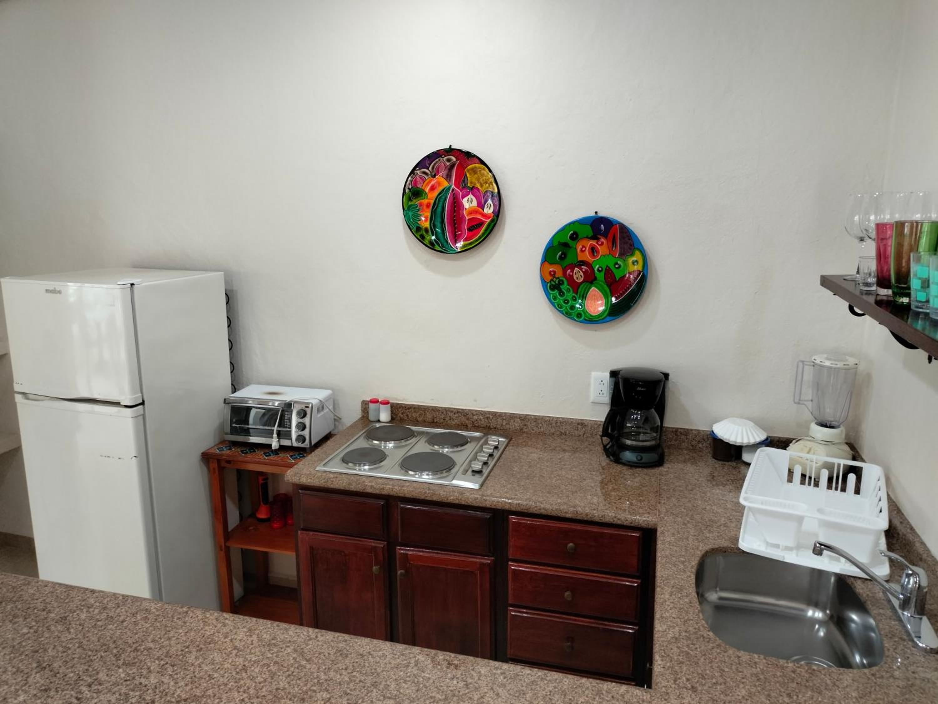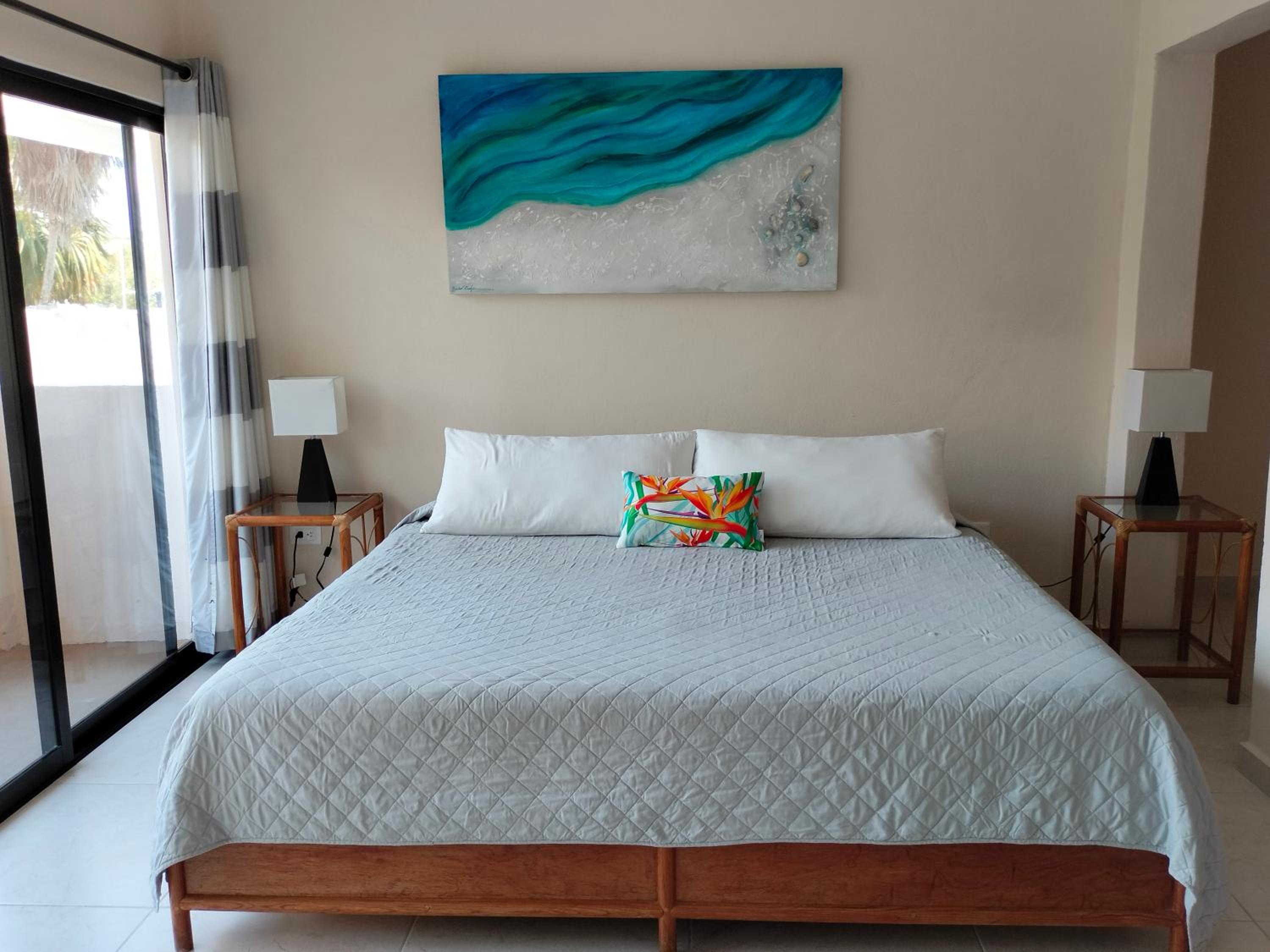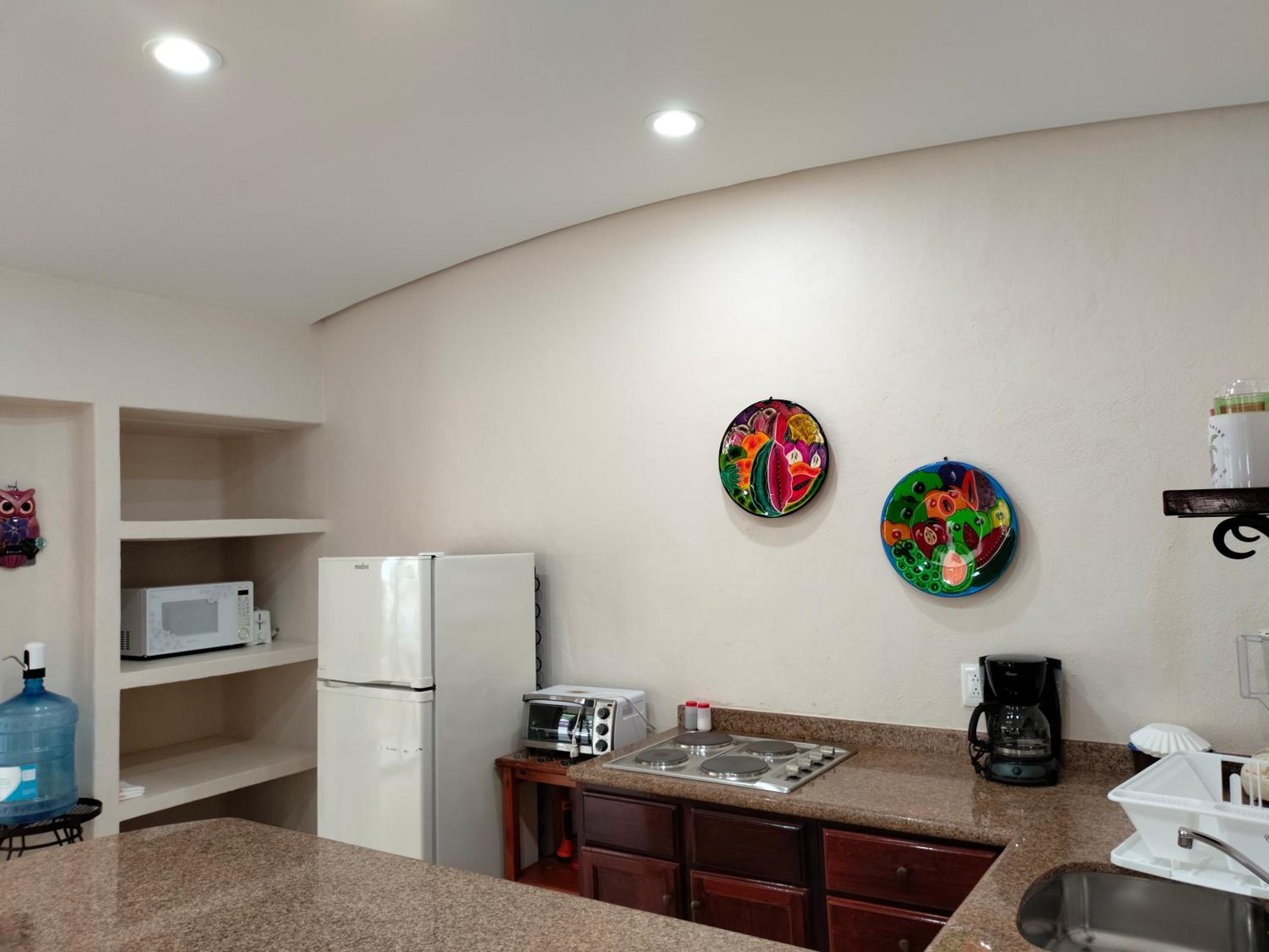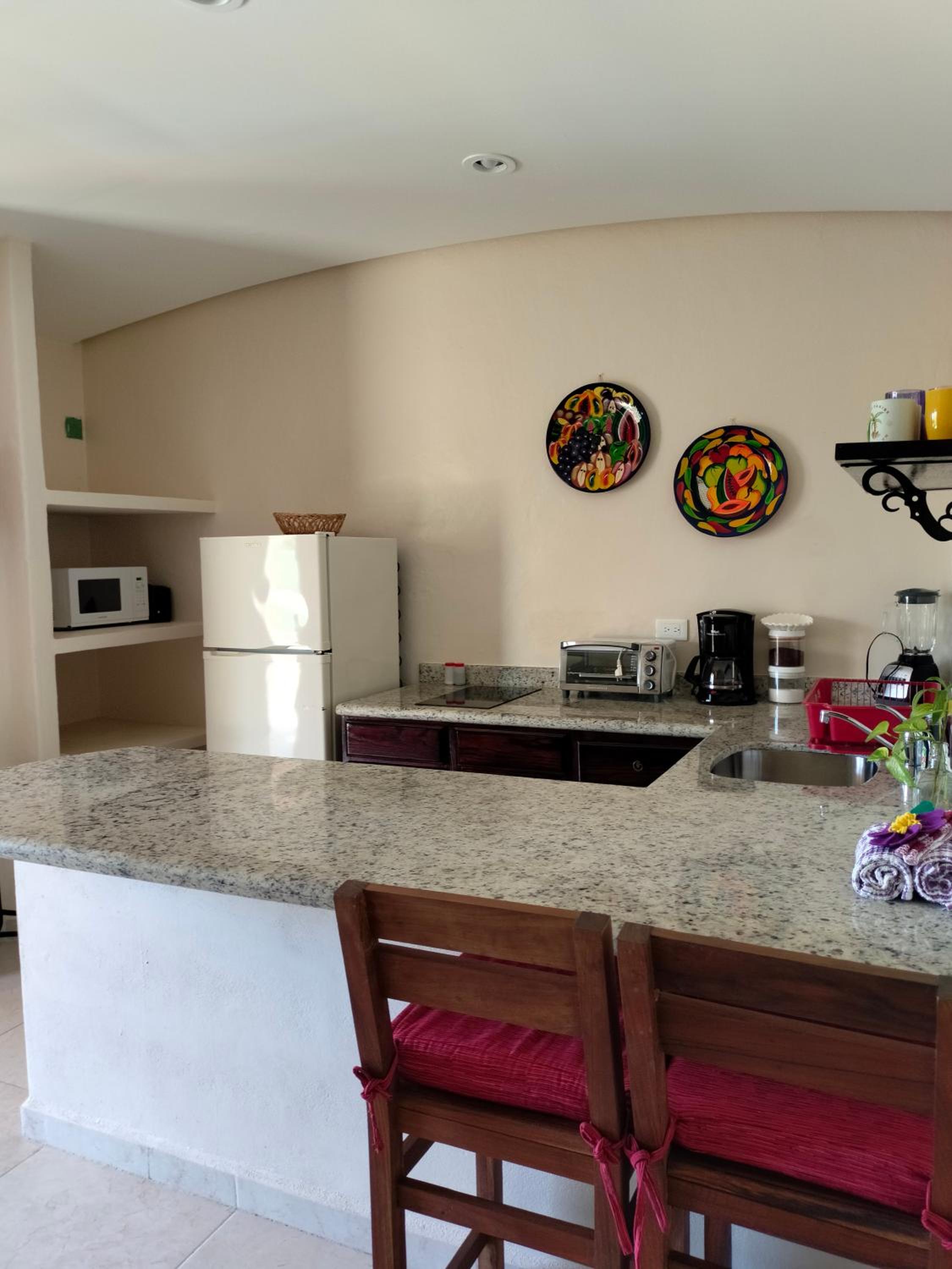 We had a great stay at Cabanas. The studio was large and comfortable. I especially appreciated the private deck with table and chairs, kitchen, good air conditioning, and Myron, the friendly owner who is responsive and nearly always available. The beautiful beach is nearby (less than 2 blocks) and collectivos, which can take you to many locations, run right outside.