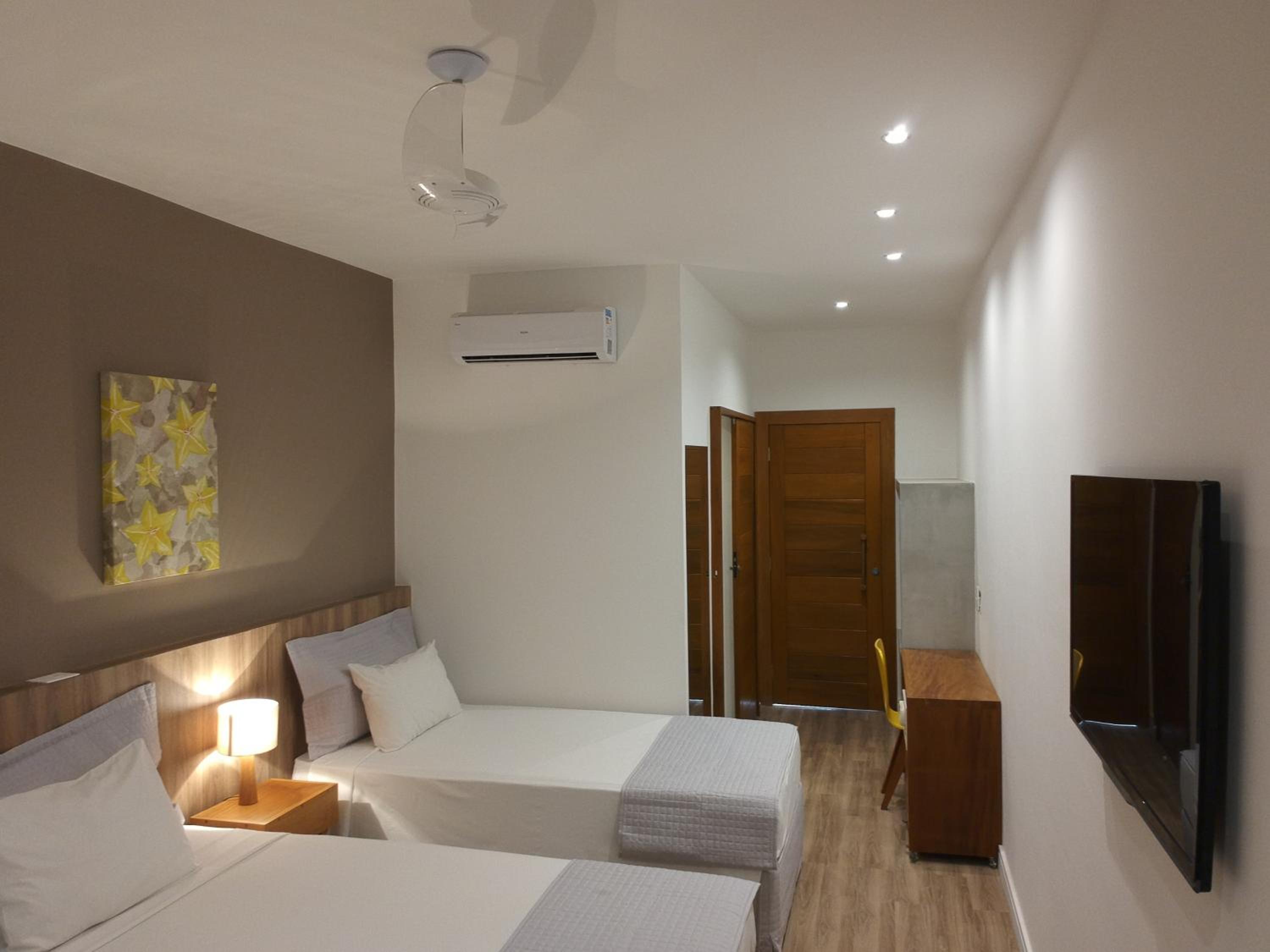 Pouco espaço para guardar malas, não havia local para apoiar a mala e nem armários. A piscina estava muito suja (de protetor solar), manchando todas as roupas de banho que usamos. Acredito que uma maior frequência na limpeza da piscina resolveria.