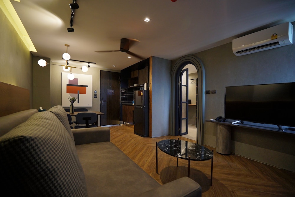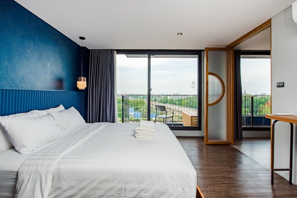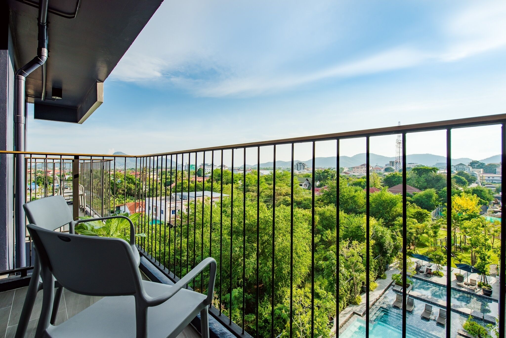 Lovely clean & comfortable room, near to the railway track but it didn't disturb our sleep too much. We stayed in a Junior Suite which had a separate living & sleeping area. There was a living/dining area with a nice balcony, sofa, tv, dining table & chairs, sink, fridge, microwave, electric hob & some cooking pans, plates cups & cutlery. There was free tea, coffee & 2 bottles of water per day which was supplied on arrival for the whole stay, we liked this idea. There were some snacks & drinks provided which you could pay for. In the bedroom area there was a separate shower & toilet, with the sink in the main area & a bath tub on another balcony. The bed was very comfortable, not the usual hard bed and the pillows were also good. Toiletries provided by the sink & in the shower plus a hairdryer. The was an in room safe big enough for a laptop and some shelves/racking for clothes, some drawers/wardrobe would have been better for us. The breakfast was average. There was something for for everyone but although on hotplates was cold. Omelettes and eggs were pre-prepared, we prefer them made to order and hot. The restaurant food looked good but we always ate out. There is a good selection of drinks & food but no bottles of Leo! The Midnight drink made with butterfly pea is delicious. The pool is lovely, although not many sunbeds, there were always some available. There is a gym, pool table & games area, also a room for laundry wash for 40 baht. Would stay again.
