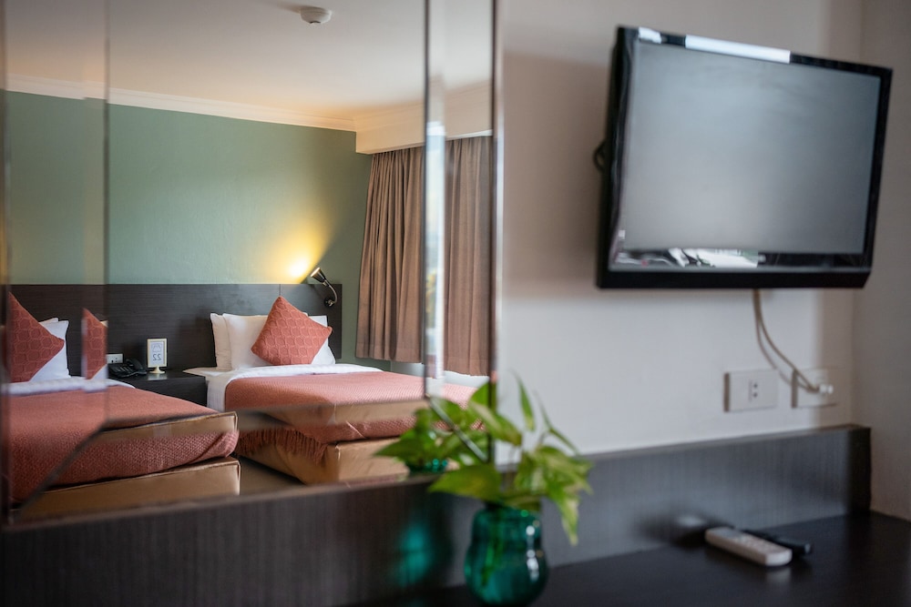 Unwind in one of the 109 air-conditioned guestrooms equipped with cable TV, bathrooms with showers, and essential amenities like safes and desks.