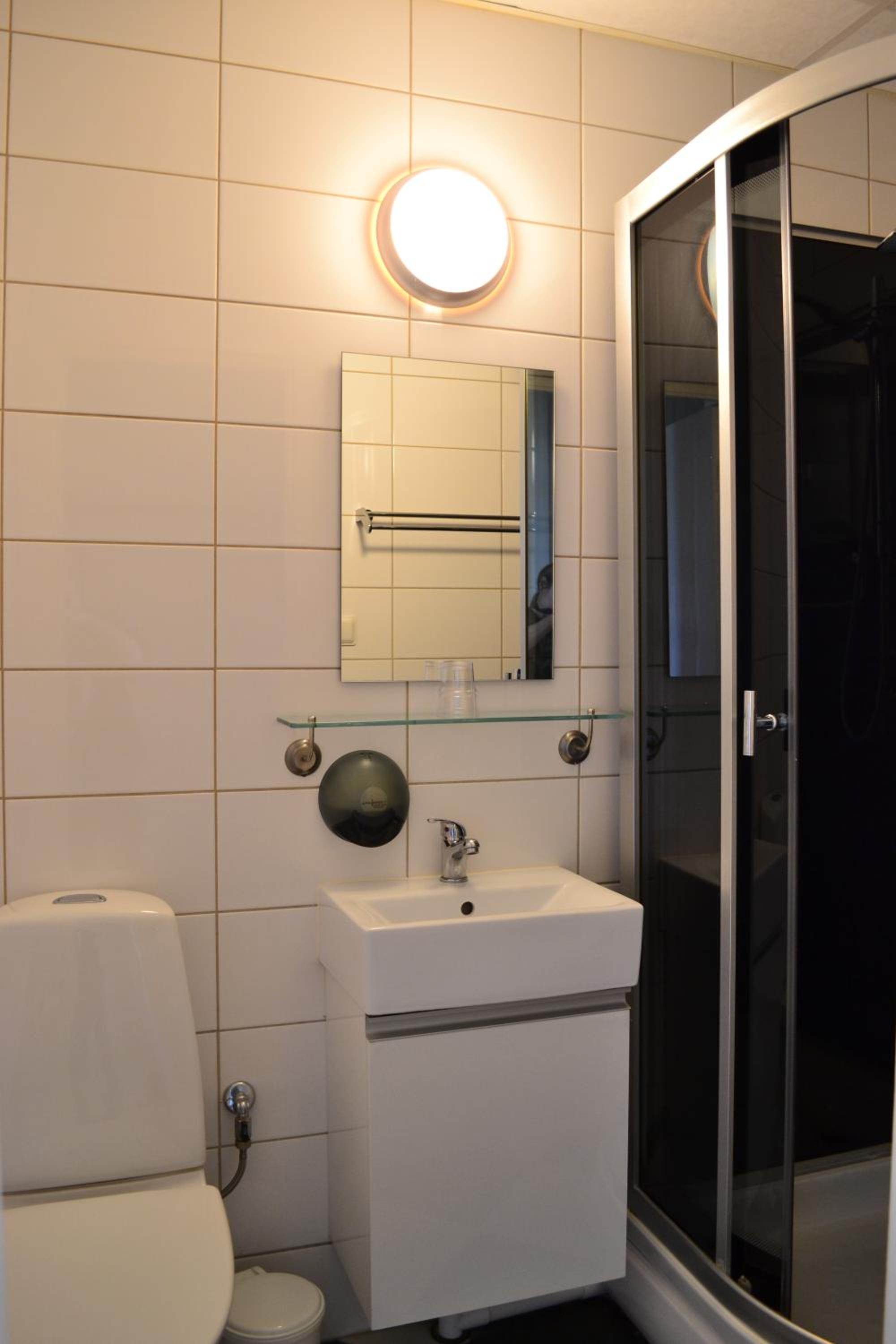 Rent och fräscht i ombyggda lägenheter. Bra frukostbuffe.