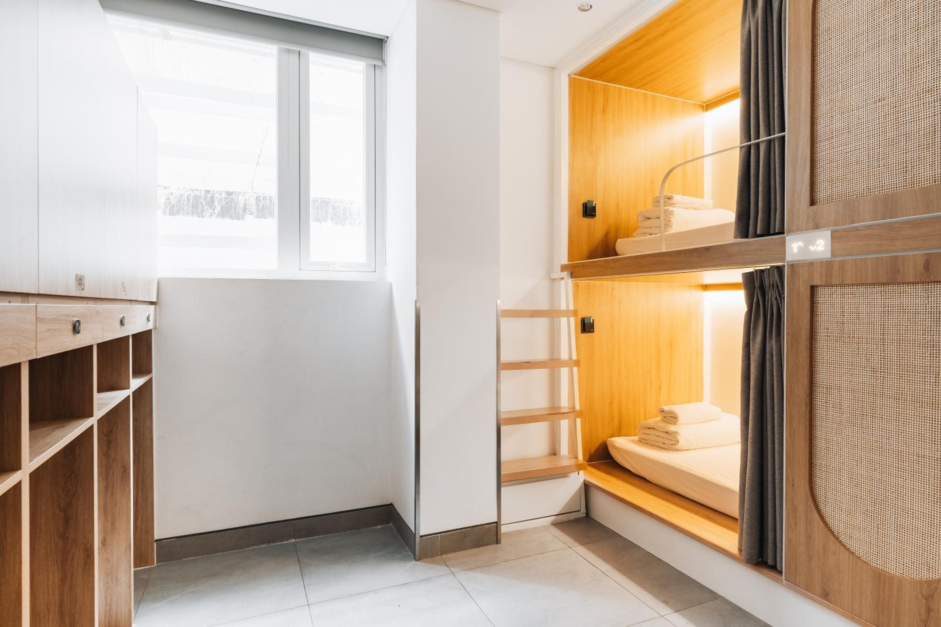 Loved everything, location was very handy, staff were so lovely and friendly, was very clean, impeccable, probably helped I stayed in a female only floor. Other women were very quiet. I didn’t come travelling to socialise so was happy that this hostel was quiet and not a sociable or alcohol hostel. Sometimes I wouldn’t even know if people were in their beds or not because so quiet. You have so much privacy, good curtains round beds and stairs up to beds, good lockers, bathrooms were amazing, space to do hair and makeup, good showers, toilets were like Japanese toilets and were really good. Loved the slide. Loved the kitchen facilities. The patio area was so good to sit on wit food and drink. I loved it and would definitely come back.